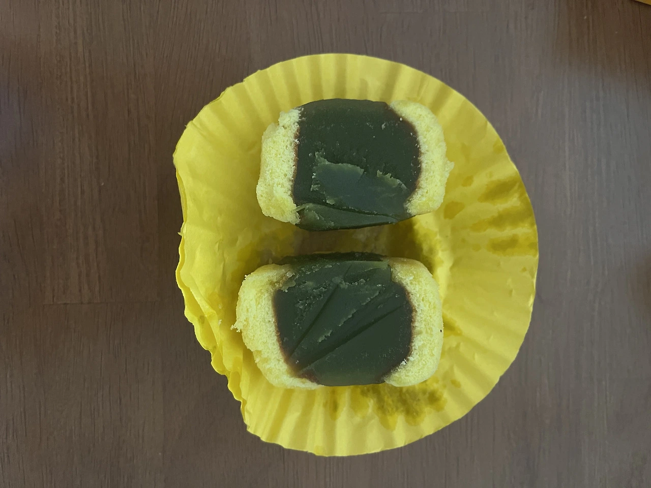 겉은 부서지는 듯 촉촉한 카스텔라 식감. 안쪽에 완두 앙금이 들어 있어 단맛의 균형이 좋음. (실제 엄마가 맛있게 드심)