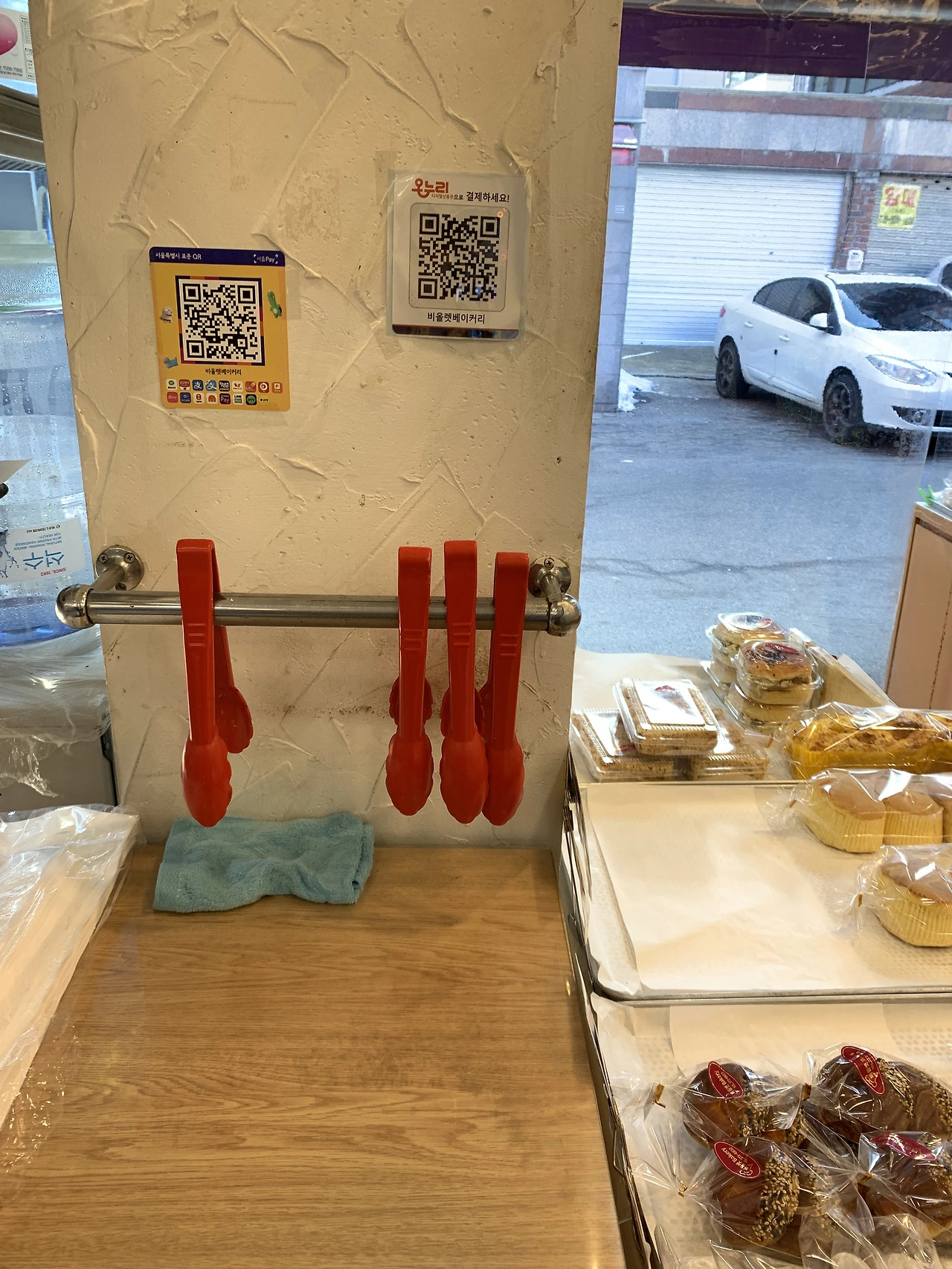 - 음악·라디오·TV 소리는 없고, 메인 홀 뒤 키친에서 남 사장님이 계속 빵을 굽고 계심 (빵 굽는 향이 진하게 퍼짐)