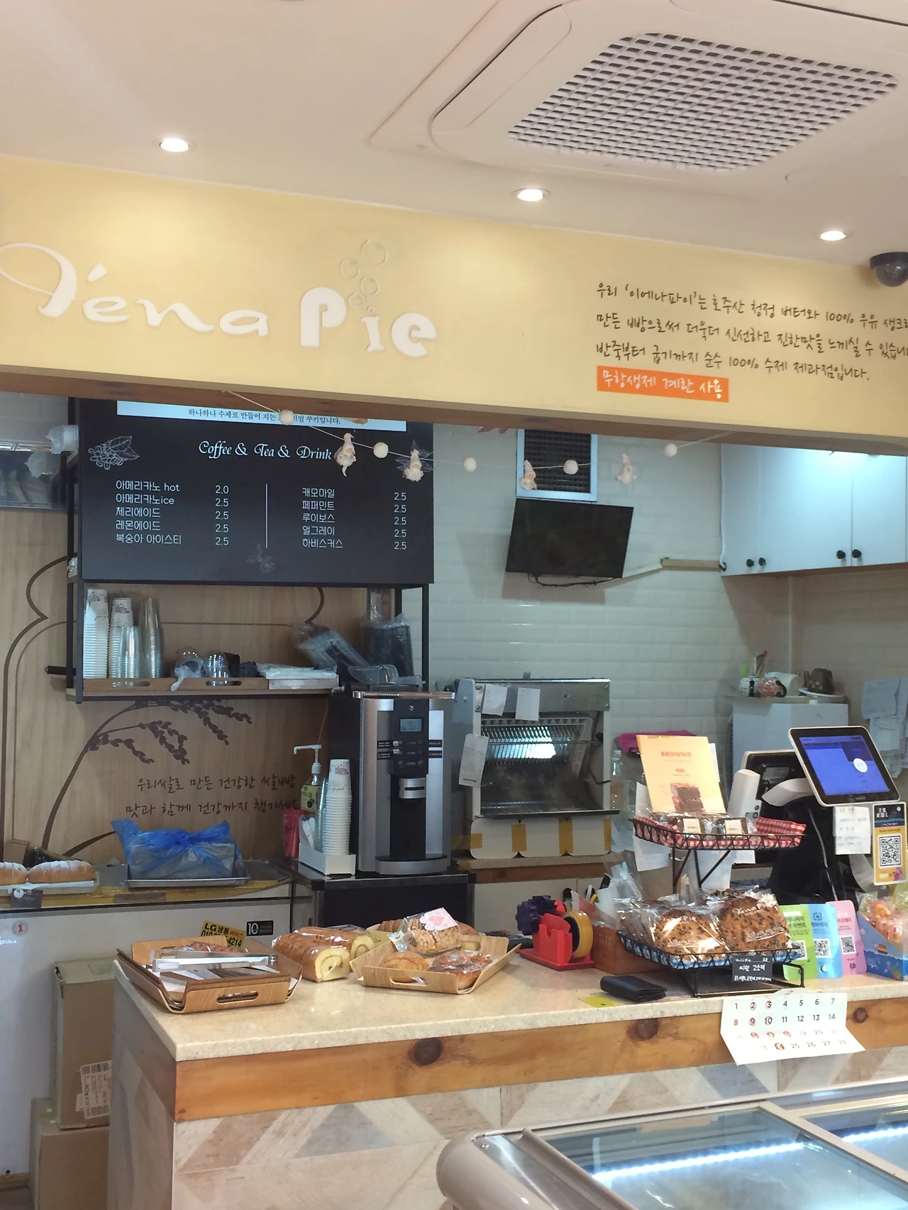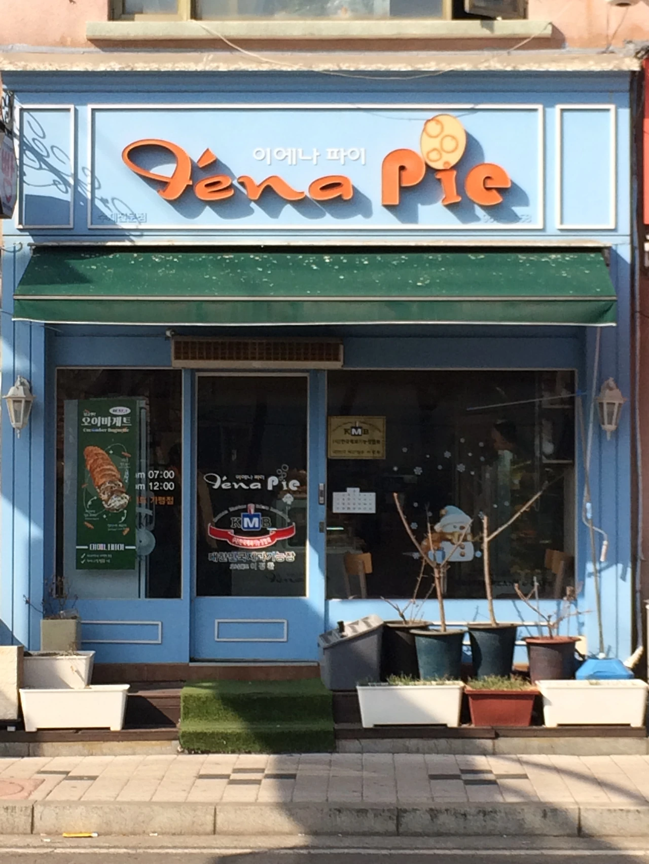 제기동에서 쌍문으로 넘어가려던 길이었다. 그런데 가는 도중, 한 아파트 단지 상가에서 내 눈과 발을 동시에 붙잡는 외관의 가게를 발견했다. 파스텔 블루와 샛주황이 어우러진 간판, 그리고 그 위에 적힌 ‘파이’라는 글자. 수제 파이 전문점일까, 카페일까. 잠깐 서서 가게를 바라보며 이런저런 상상을 했다. 너무 오래된 느낌도 아니고, 그렇다고 완전히 현대적인 분위기도 아닌 그 어중간한 지점이 묘하게 마음을 끌었다. 가게 앞을 서성이며 주변을 몇 번이나 둘러보았다. 돌이켜보면 이에나파이의 첫인상은 ‘애매모호함’이었다.