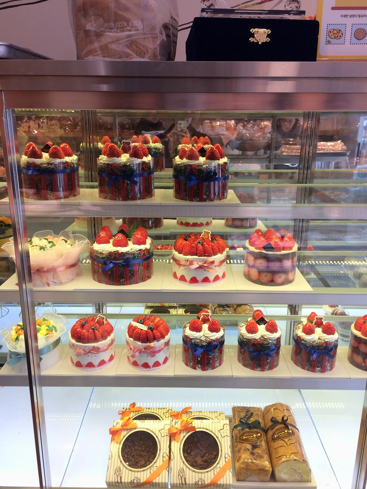 매장 안에는 장식 요소가 유난히 많았다. 어딘가 어렸을 적 방문했던 파주 영어마을의 한 가정집을 떠올리게 하기도 했다. 아파트 단지 입구에 자리 잡고 있다 보니 동네 주민들이 자연스럽게 들르는 곳 같았고, 배달 주문도 끊임없이 이어졌다. 쇼케이스에는 제철 딸기가 듬뿍 올라간 딸기 케이크가 가득했고, 빵집 전체에서는 소박하면서도 세련된 분위기가 함께 느껴졌다. 매장을 가득 채운 선반에는 빵과 과자들이 빼곡히 놓여 있어 구경하는 재미도 있었다. 곳곳에 놓인 인형과 상패, 자격증들은 묘하게 친숙했고 편안했다. 전 연령층을 고려한 듯 메뉴 종류도 꽤 다양했다.