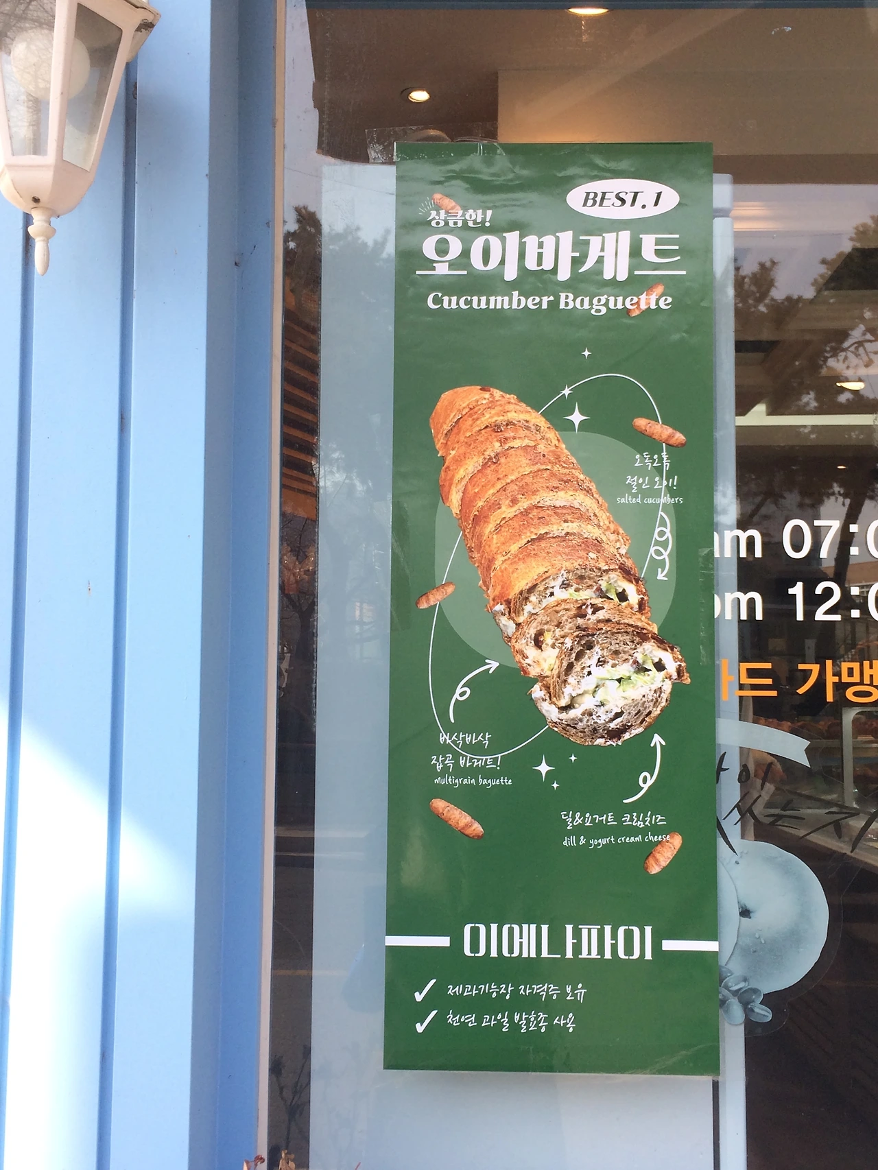 시그니처 메뉴가 여러 개라는 점도 흥미로웠다. 멜론빵과 오이바게트, 그리고 소금빵이 특히 인기가 많다고 했다. 더 인상 깊었던 건 같은 건물 2층과 3층에서 빵과 케이크를 직접 만든다는 이야기였다. 아저씨가 빵을 만들고, 따님이 케이크를 만들고, 어머니가 계산과 홀 운영을 맡는다고 했다. 가족이 자연스럽게 역할을 나누어 가게를 꾸려가고 있었다. 문득 나 역시 언젠가 가족들과 함께 카페를 운영하고 싶다는 생각을 했던 기억이 떠올랐다. 그래서인지 이 공간에서 따뜻한 기운이 더 또렷하게 전해졌다.
