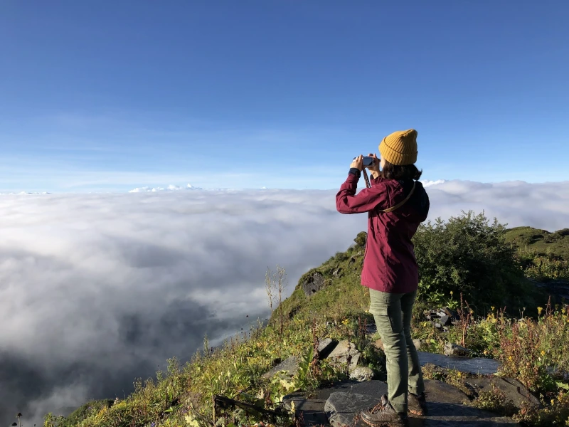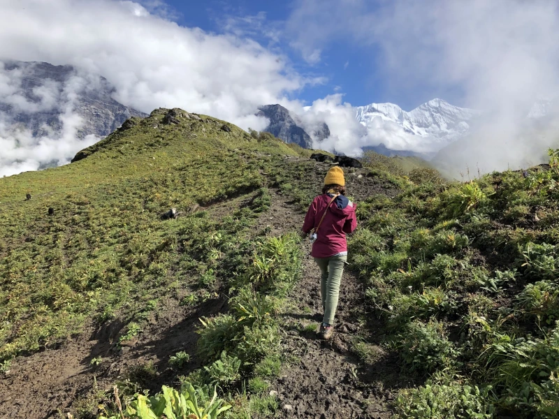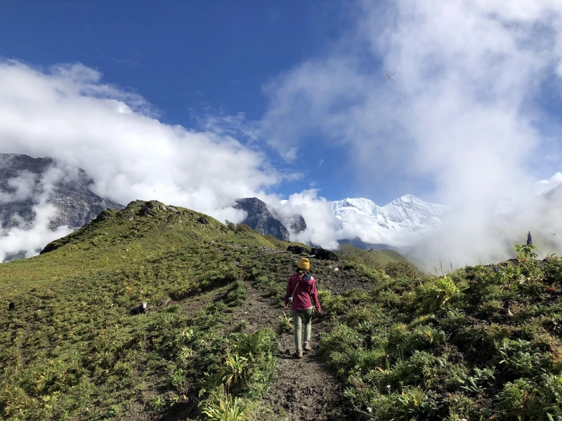 아침 공기를 들이마시며, 빗물에 맑아진 숨결이 걷는 것만으로도 나를 행복하게 만들었다. 빗물에 젖어 비스락거리는 풀잎을 스치며, 고지대 초원의 고요함 속에서 히말라야의 원시적이고 길들여지지 않은 아름다움과 마주한다. 그곳에서 나는 순수한 초월의 순간을 경험한다.