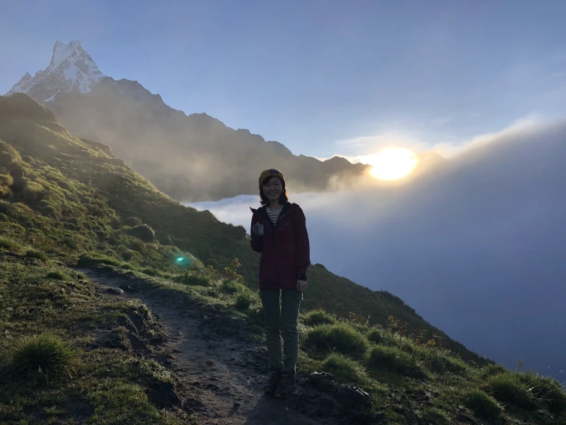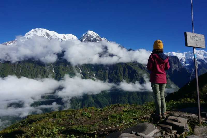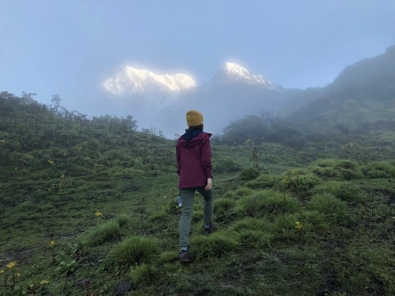 새벽에 일어나 마차푸차레 베이스캠프로 향할 준비를 했다. 고도가 더 높아질 것을 대비해 두꺼운 바지와 양말을 챙겨 입고, 머리를 따뜻하게 보호하기 위해 털모자도 썼다.
