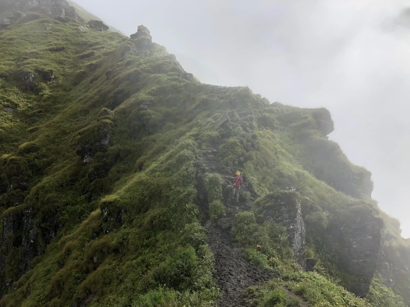그렇게 다시 하이캠프로 돌아와 포카라로 하산하기 위해 진흙투성이 길을 걷기 시작했다. 억수같이 쏟아지는 비를 맞으며 미끄러운 길을 조심스럽게 내려갔다. 몬순 기간이라 비가 정말 많이 내려서, 폭우처럼 쏟아지는 빗물에 발이 푹푹 빠지며 정신없이 내려왔다.