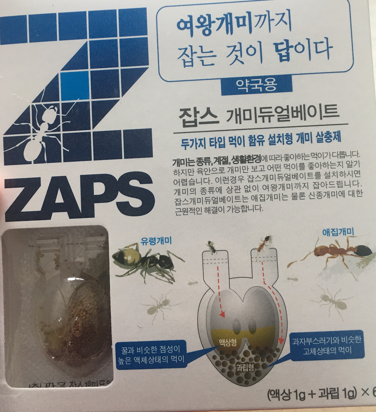 사고나서 원리를 자세히 읽어봤다. 이 약은 그러니까 개미에게 조금 늦게 나타나는 살충제가 숨겨져있는 먹이를 주는 것이다.