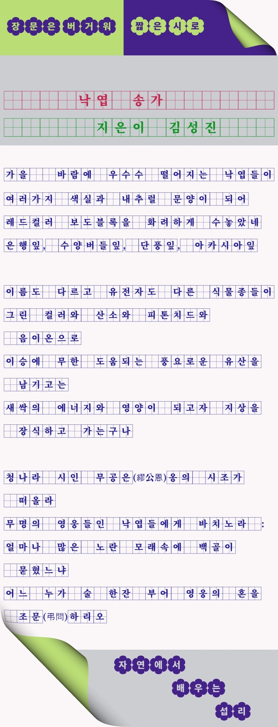 직접 개발한 베잔테 플랫폼에 직접 지은 시 "낙엽 송가(落葉頌歌)"를 실어 보았습니다.