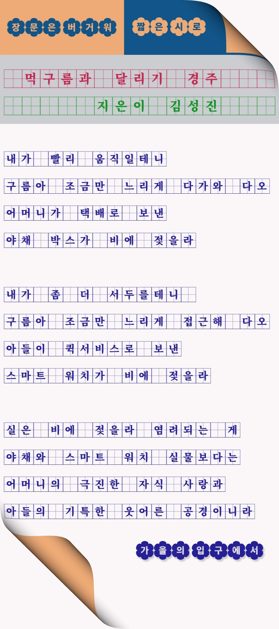 직접 개발한 베잔테 플랫폼에 직접 지은 시 "먹구름과 달리기 경주"를 실어 보았습니다.