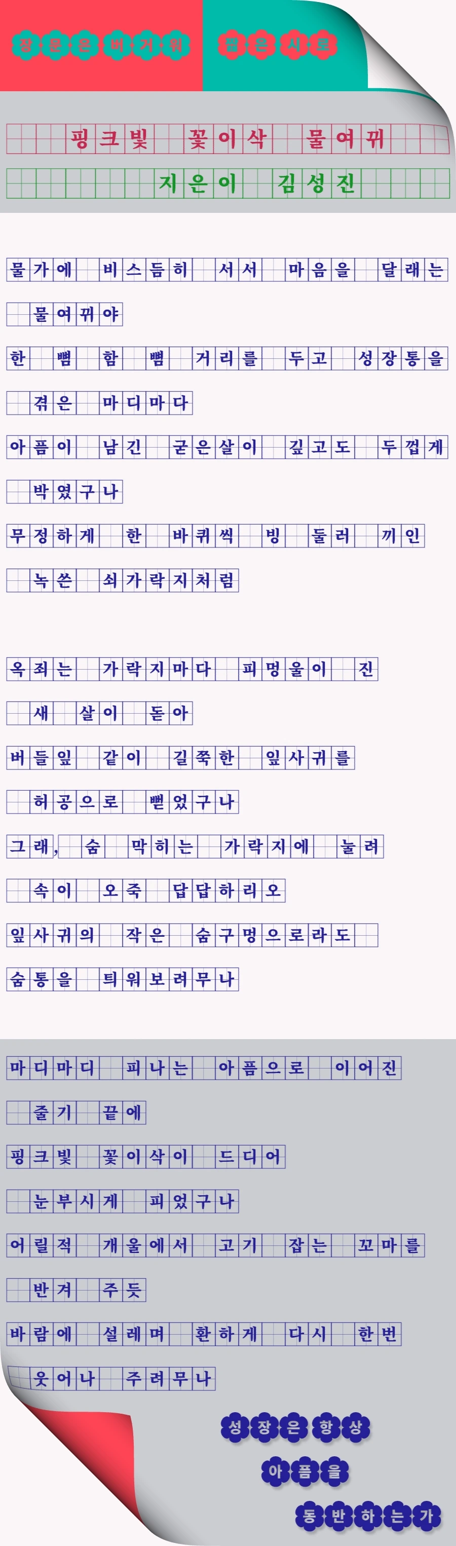직접 개발한 베잔테 플랫폼에 직접 지은 시 "핑크빛 꽃이삭 물여뀌"를 실어 보았습니다.