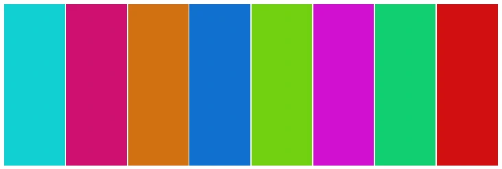 조화로운 배색 관계에 있는 8색을 같이 배열해 놓을 경우 서로의 매력적인 대비 효과로 인해 시선 집중의 홍보 실효(實效)를 최대화하게 됩니다.