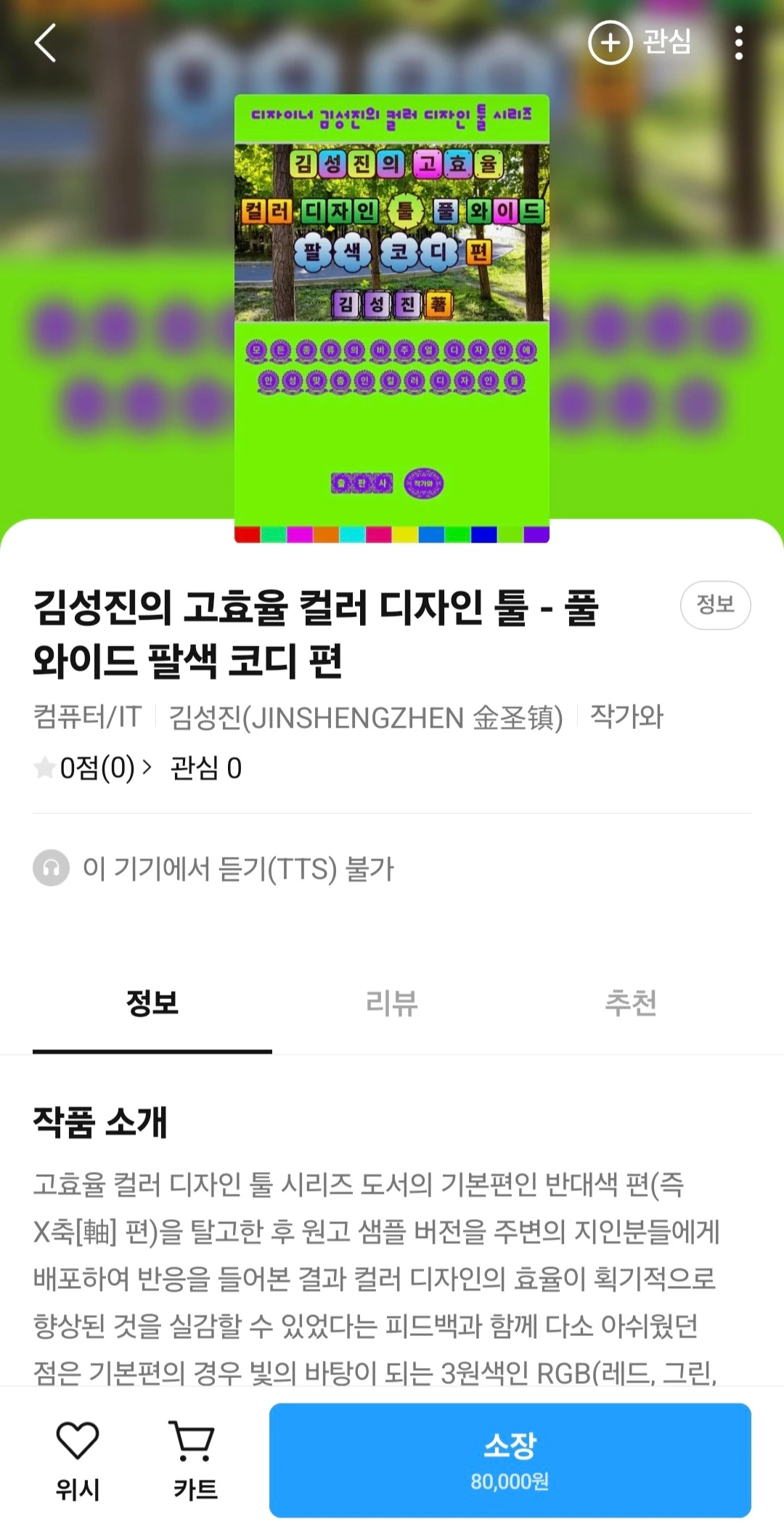 도서 표지 디자인은 한글 디자이너이기도 한 저자 김성진이 직접 디자인 작업을 진행하였으며 표지 제작에는 김성진이 직접 개발한 한글 폰트 1종(이미 출간한 도서 "김성진의 한글 디자인 9백여 종"에 수록됨)과 역시 김성진이 직접 개발한 베잔테 폰트 11종(이미 출간한 도서 "김성진의 화려한 베잔테 폰트 3백여 종"에 수록됨), 그리고 기 출간 시리즈 도서인 "김성진의 고효율 컬러 디자인 툴"에 수록된 컬러 코디 6종을 적용하였음을 아룁니다.