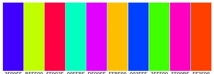 조화로운 배색 관계에 있는 10색을 같이 배열해 놓을 경우 서로의 매력적인 대비 효과로 인해 시선 집중의 홍보 실효(實效)를 최대화하게 됩니다.