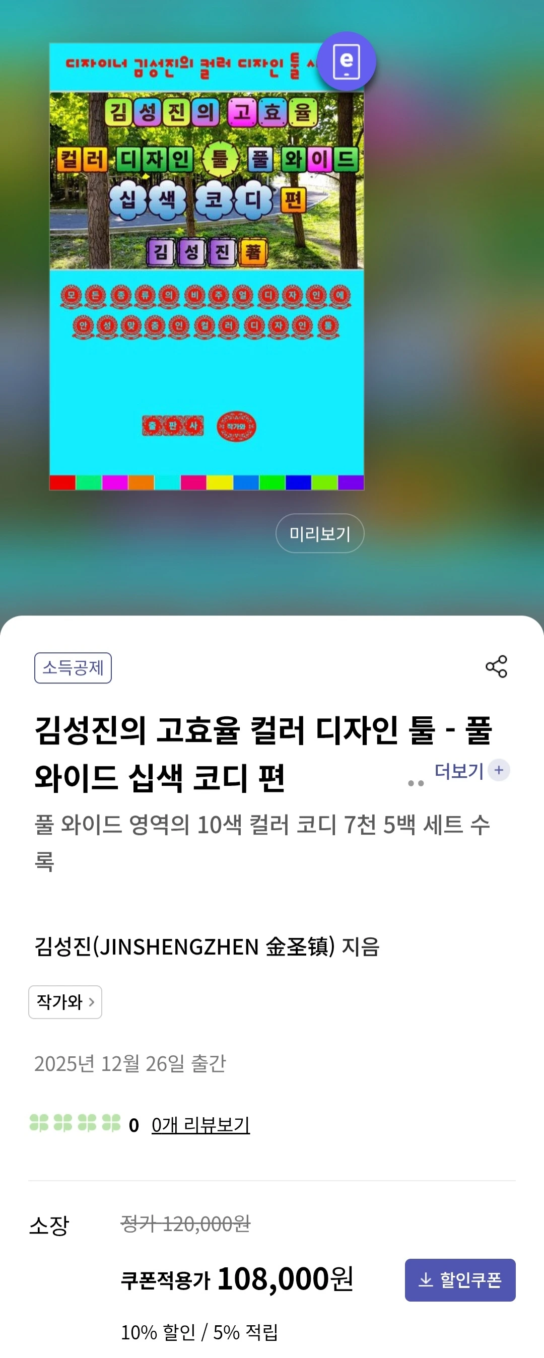 이번에 새로 출간하는 "풀 와이드 십색 컬러 코디 편"은 2색 컬러 코디를 다루던 기존의 시리즈 도서와는 달리 풀 와이드 영역의 10색 컬러 코디 7천 5백 세트를 수록하고 있습니다.