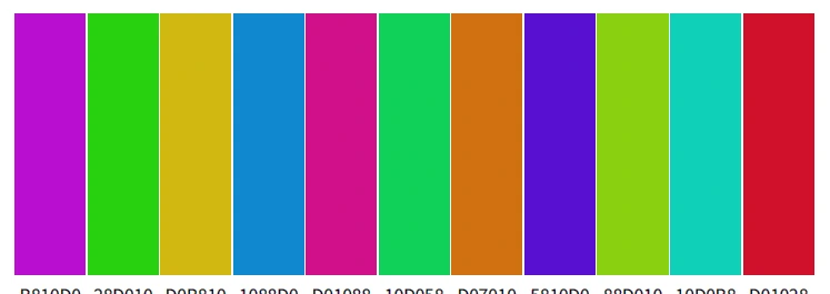조화로운 배색 관계에 있는 11색을 같이 배열해 놓을 경우 서로의 매력적인 대비 효과로 인해 시선 집중의 홍보 실효(實效)를 최대화하게 됩니다.