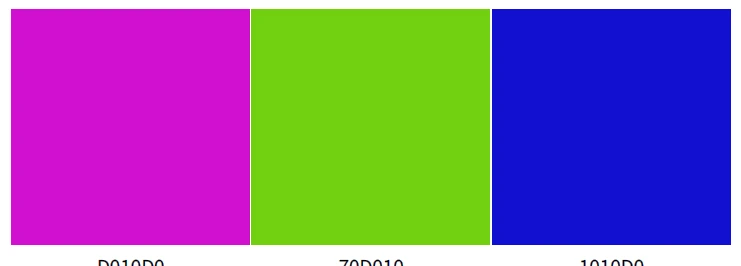 조화로운 배색 관계에 있는 3색을 같이 배열해 놓을 경우 서로의 매력적인 대비 효과로 인해 시선 집중의 홍보 실효(實效)를 최대화하게 됩니다.