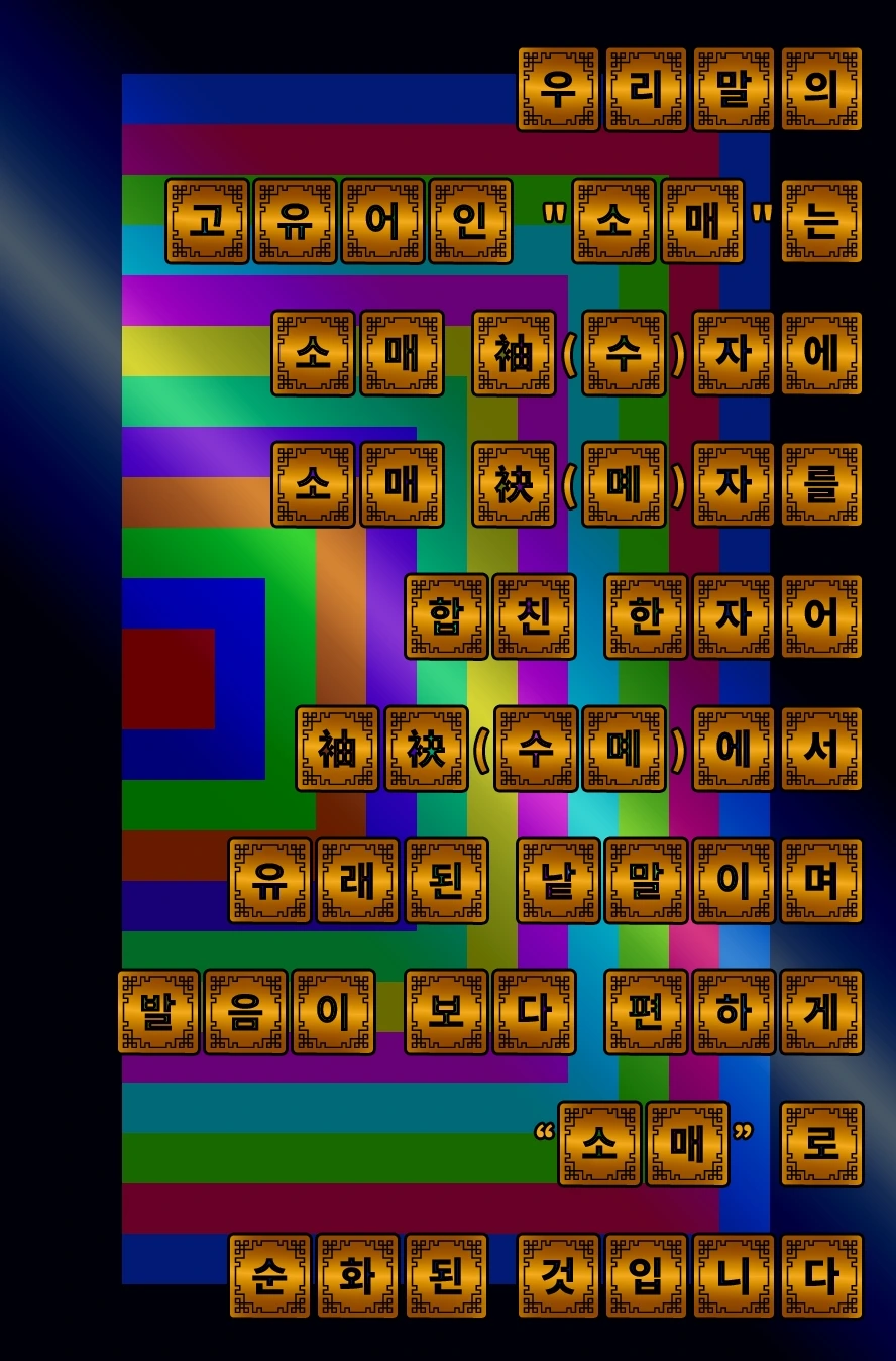 우리말의 고유어인 "소매"는