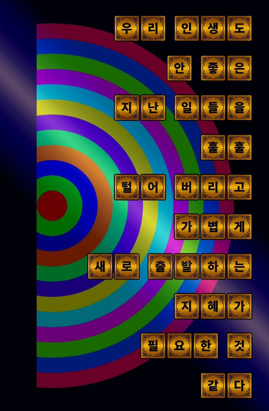 이미지 디자인은 직접 개발한 베잔테 폰트(이미 출간한 도서 "김성진의 화려한 베잔테 폰트 3백여 종"에 수록됨), 그리고 기 출간 20부 작 시리즈 도서인 "김성진의 고효율 컬러 디자인 툴"에 수록된 컬러 코디 기법들을 적용하였음을 아룁니다.