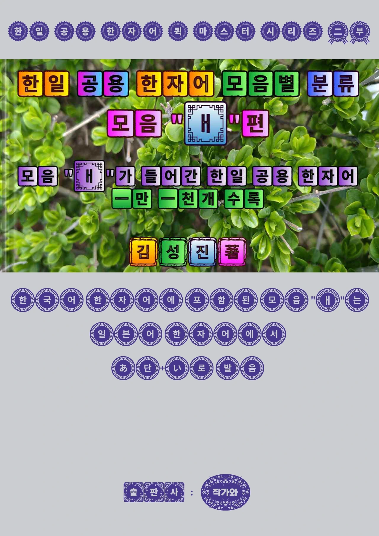 이 시리즈 도서의 샘플 버전을 주변 지인분들에게 돌려서 시독(試讀)시킨 후 소감을 들어 보니 일석십조라는 말이 무색할 정도로 한일 공용 한자어 마스터 효율이 획기적으로 향상되는 효과를 실감했다는 한결같은 품평과 함께 이미 출간한 받침별 분류 한일 공용 한자어 도서외에 모음별 분류 시리즈 도서도 추가로 펴내 주었으면 한일 공용 한자어 퀵마스터에 더 많은 도움이 될 것 같다는 피드백이 들어왔습니다.