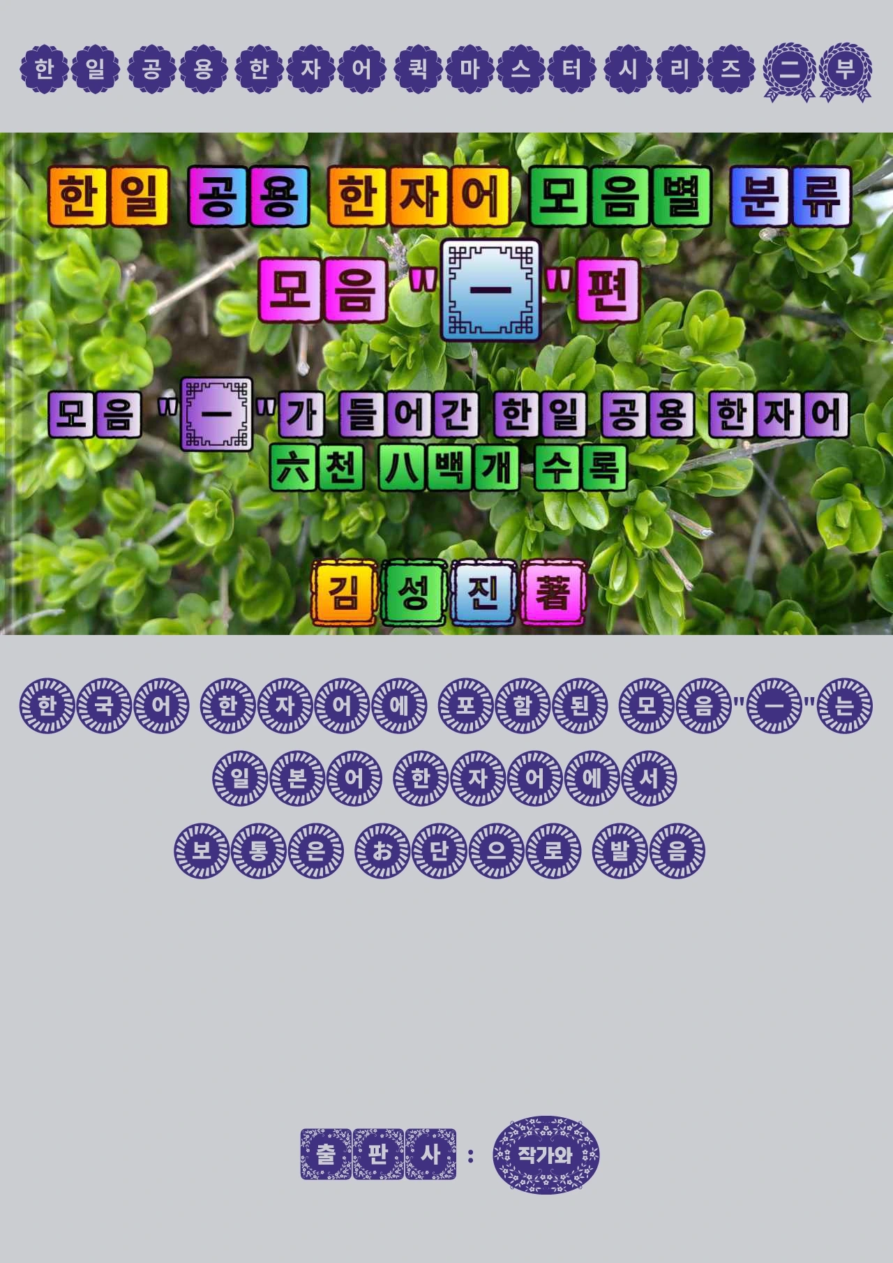 모음별 발음 매칭 룰은 앞서 출간한 한일 공용 한자어 퀵마스터 비법 공개 시리즈 도서 제1부(받침편)의 제7권인"한일 공용 한자어 발음별 분류 - 무(無) 받침편"에도 완벽하게 적용되는 매칭 룰이라 지인 분들의 이런 시의적절한 요구에 부응해 그동안 본인의 한일 공용 한자어 연구 과제로 꾸준히 진행해 온 해당 모음별 매칭룰 분류 연구의 결과물을 18권의 도서로 신규 편저하여 추가로 발간하게 되었습니다.