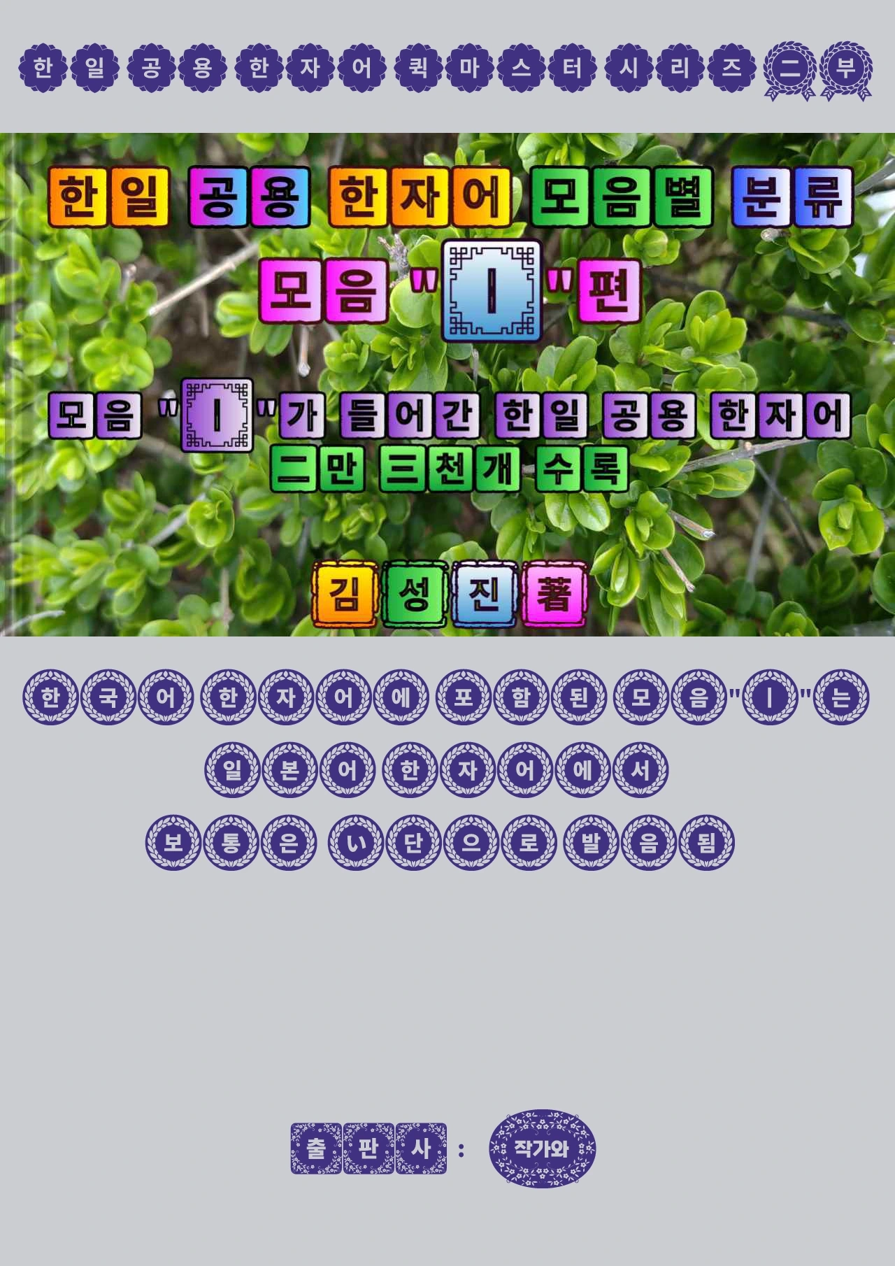 모음별 발음 매칭 룰은 앞서 출간한 한일 공용 한자어 퀵마스터 비법 공개 시리즈 도서 제1부(받침편)의 제7권인"한일 공용 한자어 발음별 분류 - 무(無) 받침편"에도 완벽하게 적용되는 매칭 룰이라 지인 분들의 이런 시의적절한 요구에 부응해 그동안 본인의 한일 공용 한자어 연구 과제로 꾸준히 진행해 온 해당 모음별 매칭룰 분류 연구의 결과물을 18권의 도서로 신규 편저하여 추가로 발간하게 되었습니다.