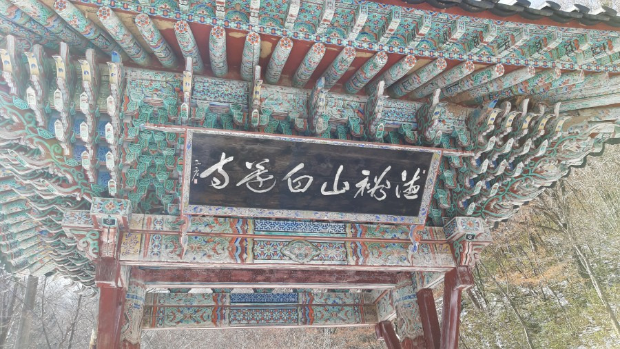 놀랍게도 오를 때의 고통이 무색할 만큼 빠르게 하산하여, 한 시간여 만에 백련사(白蓮寺) 마루에 도착할 수 있었습니다. 이곳에서 간식으로 남은 감귤과 홍삼 한 봉지를 나누어 먹고, 아이젠을 벗어 배낭에 챙겨 넣었지요. 백련사에서 주차장까지는 약 6km를 더 내려가야 했지만, 지칠 틈도 없이 발걸음을 옮겼어요.