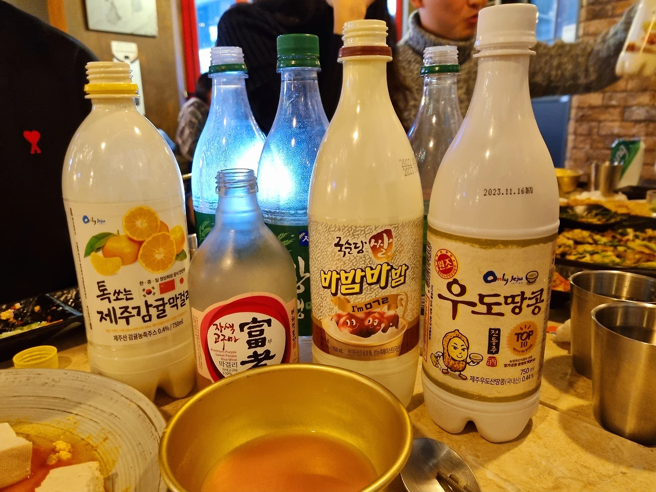 그렇게 서로 안면을 트면, 이제부터는 삼삼오오 자유롭게 이야기하며 모임을 즐기면 된다. 비 오는 날 막걸리를 먹으러 나왔다면, 먹고 싶은 막걸리를 이것저것 시켜본다. 알밤 막걸리, 바밤바 막걸리, 금귤 막걸리, 고구마 막걸리... 이얏호 신난다!