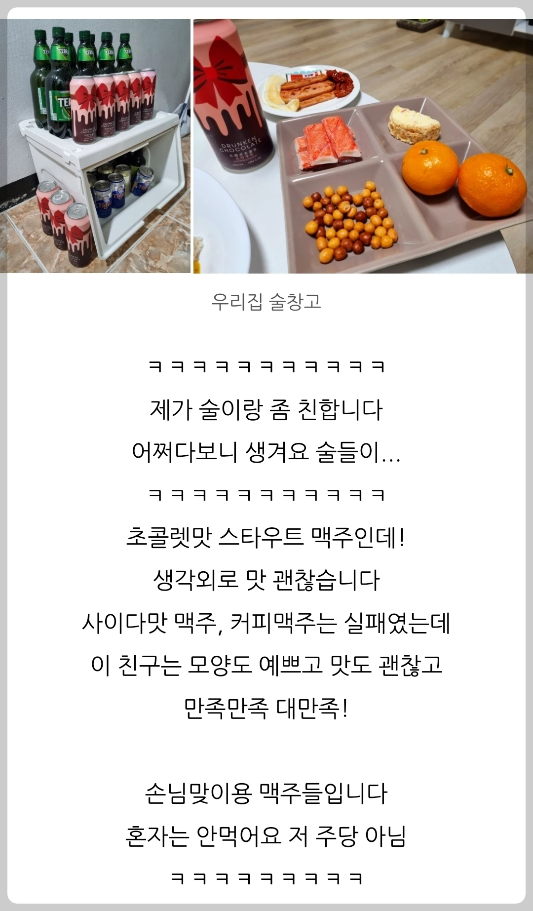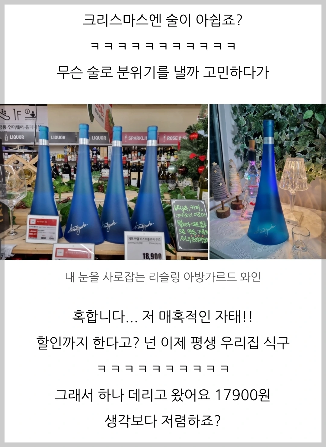 내가 블로그에 쓰는 느낌은 이렇다. 크리스마스 때 분위기용으로 마신 술을 표현할 때,
