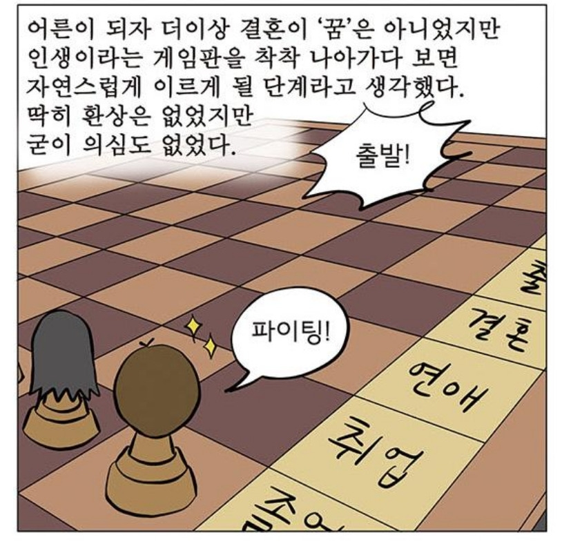 사회가 원하는 '평범함'의 트랙을 잘 달리고 있다고 생각했다. 대학, 직장, 결혼, 아이, 집, 평안한 노후. 하나하나를 마치 퀘스트를 깨듯 뛰었다.