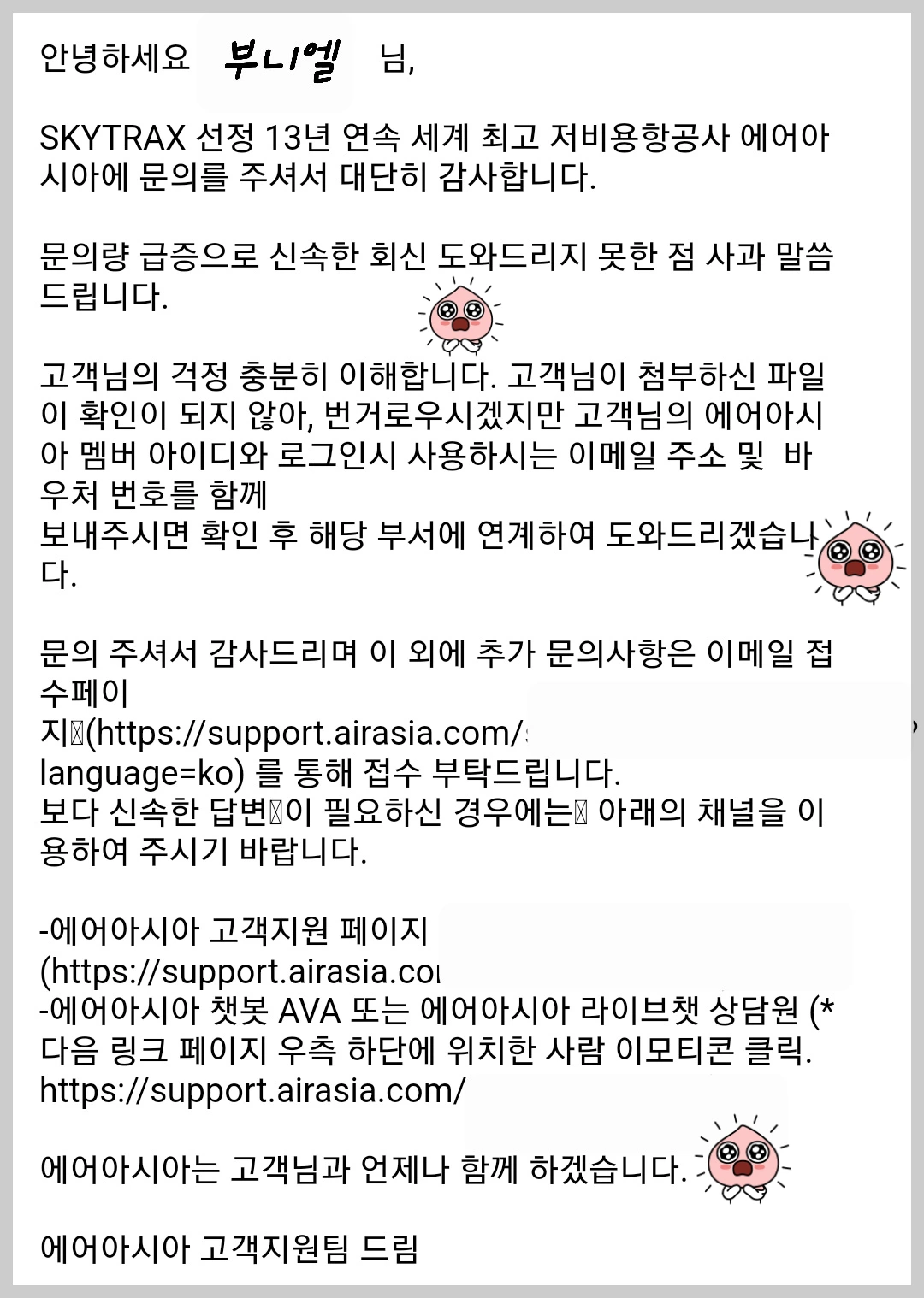 actively 라니!! 무려 매번 인공지능을 앞세워 기계적 답변만 하던 에어아시아에서 어떻게든 도와주고 싶어 하는 어투라니!!! 에어아시아 너네도 사람이었구나. 결국 사람과 사람의 만남이구나~.