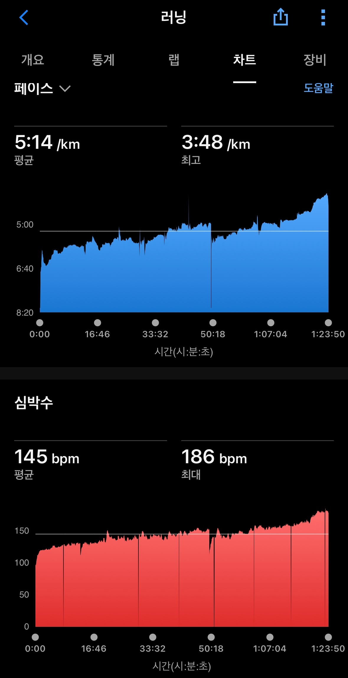 심박수가 높게 오르기는 했지만 그.. 특유의 고통은 없었다. 오히려 페이스에 리듬이 잡히니 10000m를 끝까지 뛰고 싶다는 생각이 들었다. 하지만.. 어디까지나 욕심이다. 분명히 심박수는 "아직인요...?"라고 했다. 어지간해서는 심박수가 180을 넘어가지 않는데 시작부터 180이라니;;