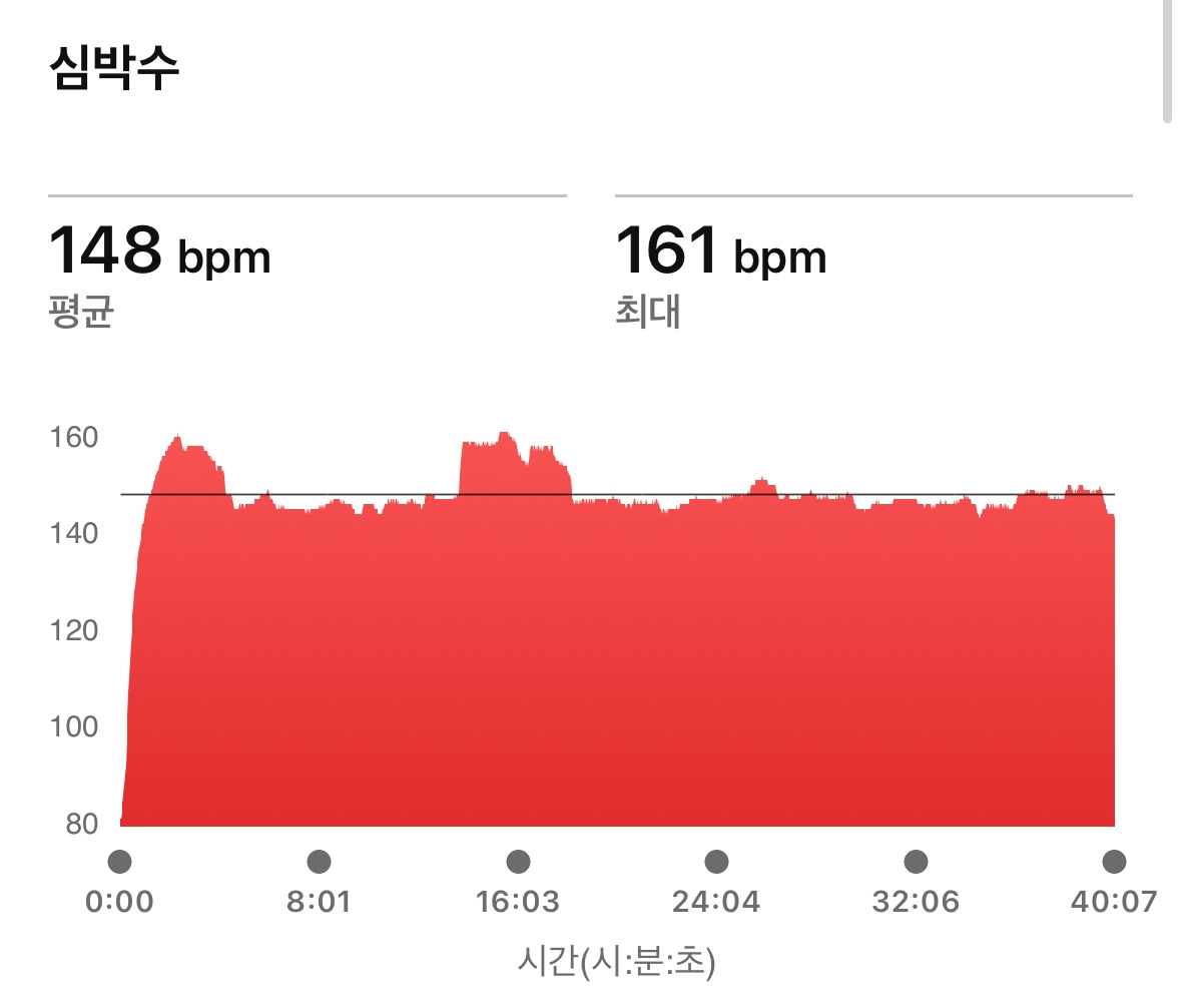 날씨가 추워서 그런지 심박수도 크게 오르지 않고 평균 148bpm 정도로 유산소 구역에서 달릴 수 있었습니다. 호호. 4분 페이스가 유산소 영역이라는게 너무 놀라울 따름입니다. 아무리 날씨가 춥다지만.. 4분페이스에 유산소 영역이라니ㅎㅎ