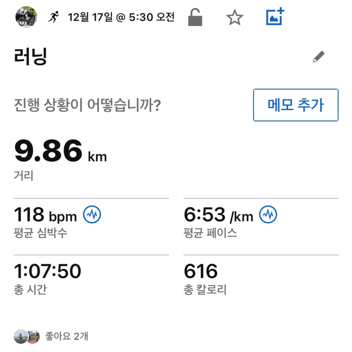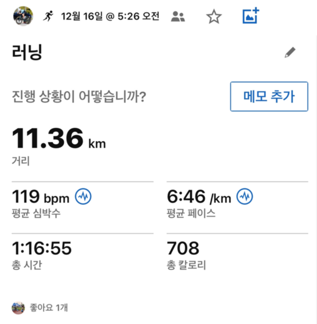 가민 커넥트를 확인해보니 함께 훈련하기로 한 분들은 역시나 잘 해내셨네요ㅠㅠ 부럽ㅋㅋ 이렇게 한번씩 아프면 1주일은 그냥 날아가는게 너무 안타깝습니다. 100일도 남지 않은 상황에서 일주일을 날려야한다니…ㅠ