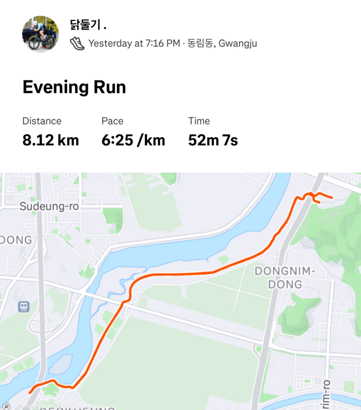 오늘도 앞에는 바람막이 형님이 계시구용.ㅋㅋ 1회전 째 페이스가 조금 빠르긴 했지만 남은 회전은 모두 정확하게 페이스를 잡고 훈련 마무리 했습니다.