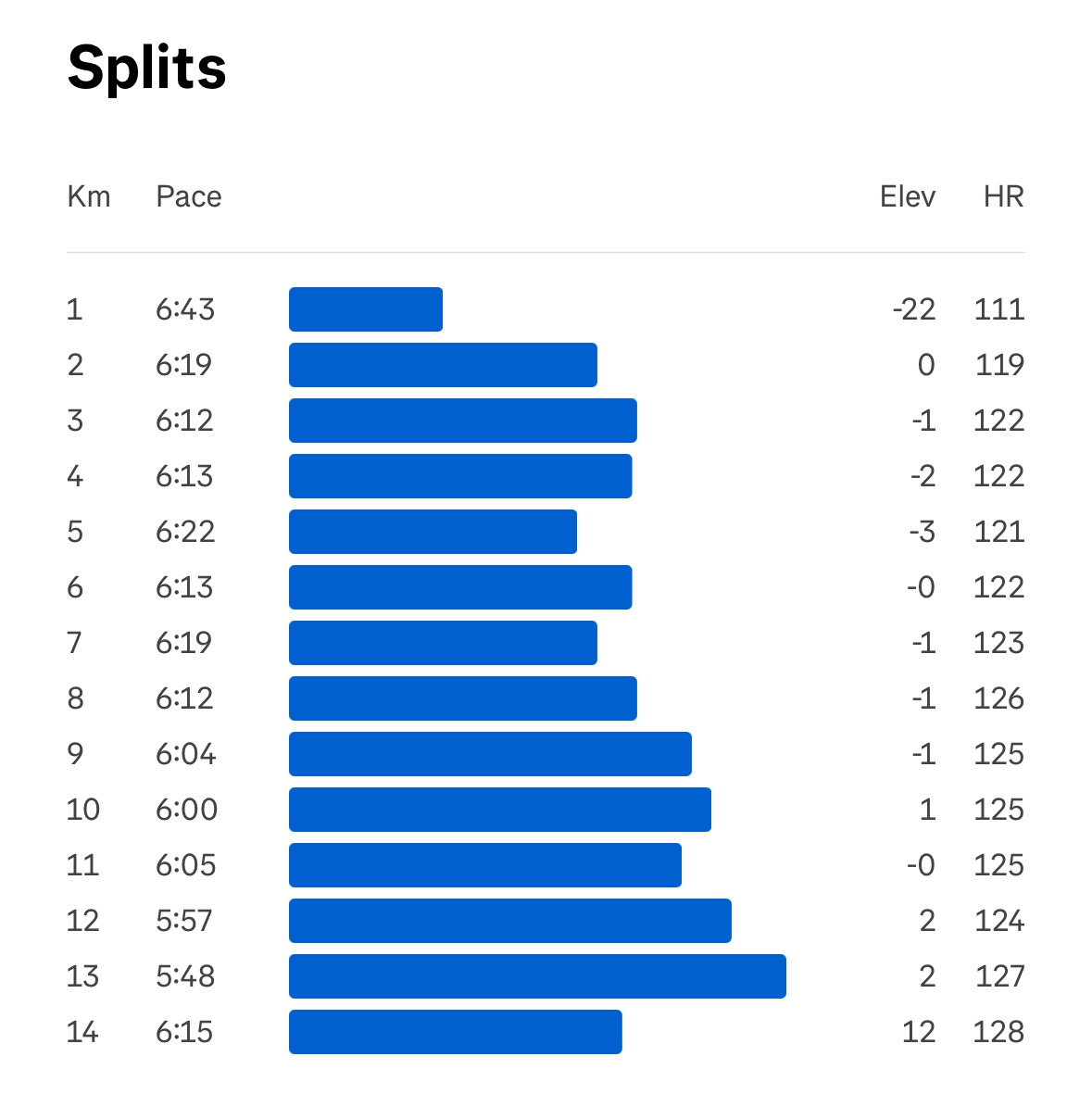 월요일 저녁 빠른 조깅 14km. 훈련 부하 143.