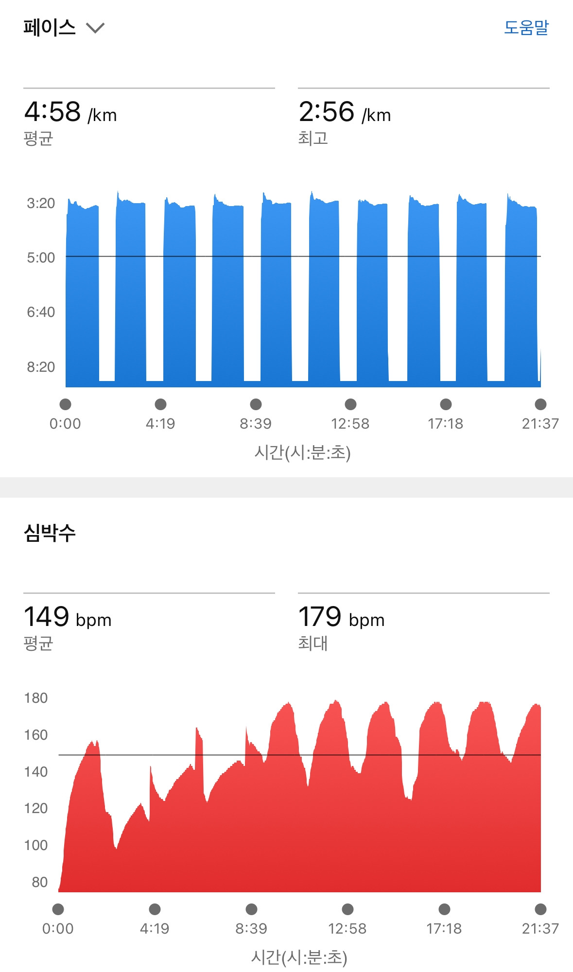 인터벌이라기보다 장거리 훈련 전 시동을 걸었다고 하는게 맞는 것 같습니다. 400m 86초로 12세트 진행했습니다.