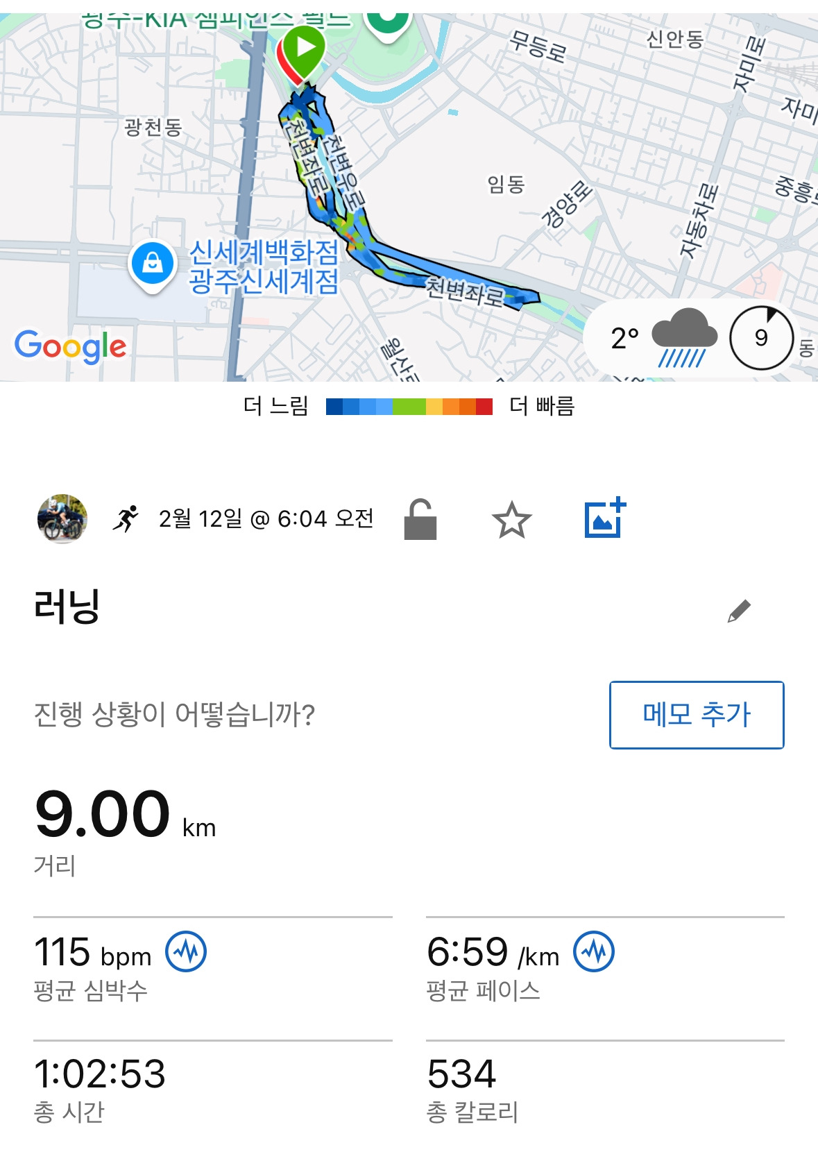 돌아오는 길은 몸이 완전히 풀려서 페이스가 계속 올라가려고 하지만 꾹꾹 눌러담아 천천히 돌아왔습니다. 이제 한파가 지나가면 아침 저녁으로 조깅을 해야겠습니다. 대회 아침부터 달려야하니 아침에 깨어있도록 습관을 들여야할 것 같습니다.