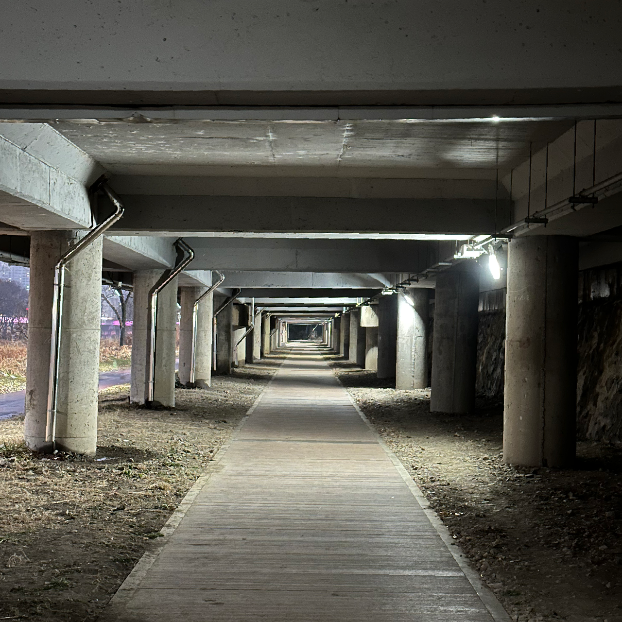 아침일찍부터 비가 내리고 있었습니다. 오늘 오후에 인터벌 훈련이 있기 때문에 아침 조깅을 꼭 해야하는 상황이었습니다. 그래서 지난 일요일 훈련했던 도로밑 데크 산책로에서 아침 조깅하고 왔습니다.