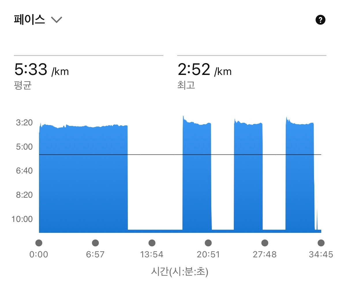 마지막 세트에 페이스가 빨라지기에 놓아버리고 계획한 훈련으로 잘 마무리했습니다.