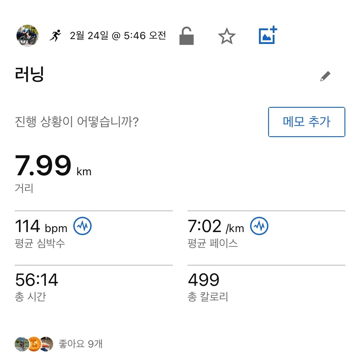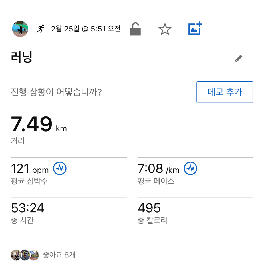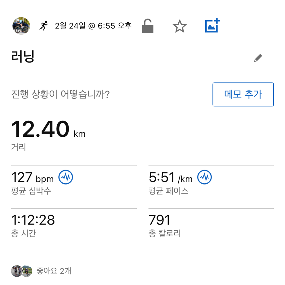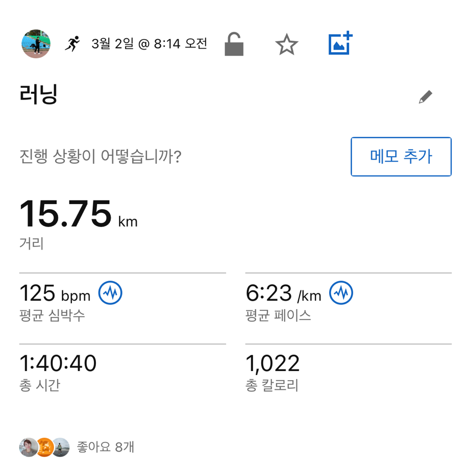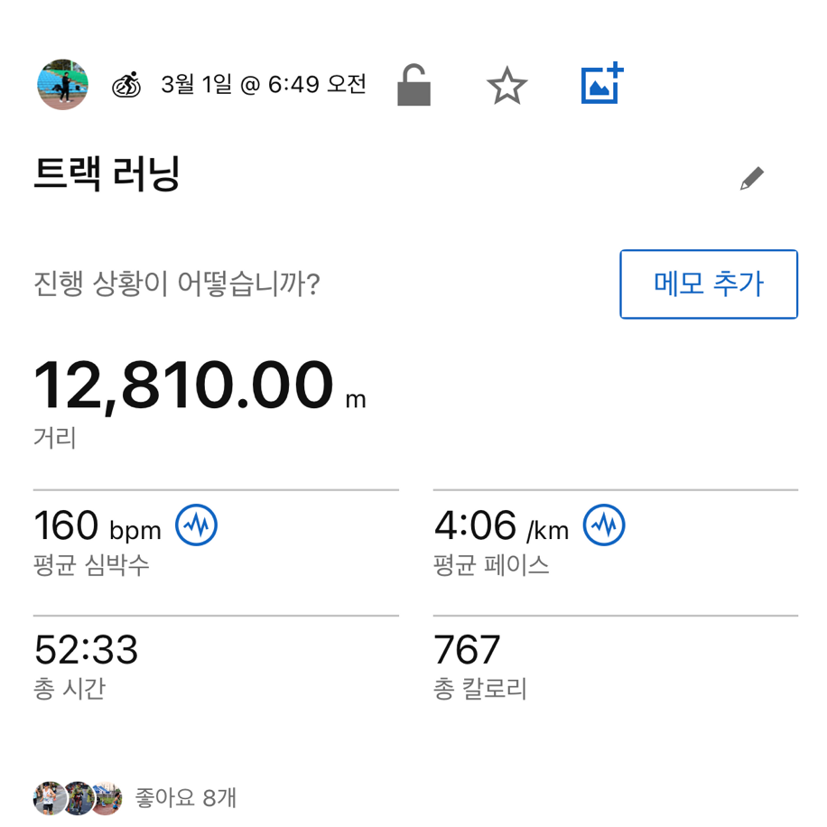 토요일 지속주 훈련이 잡혀있는데 그때까지는 괜찮앚졌으면 좋겠습니다. 서울마라톤 대비 마지막 지속주 훈련이기 때문에 깔끔하게 마무리하고 싶은 마음입니다.