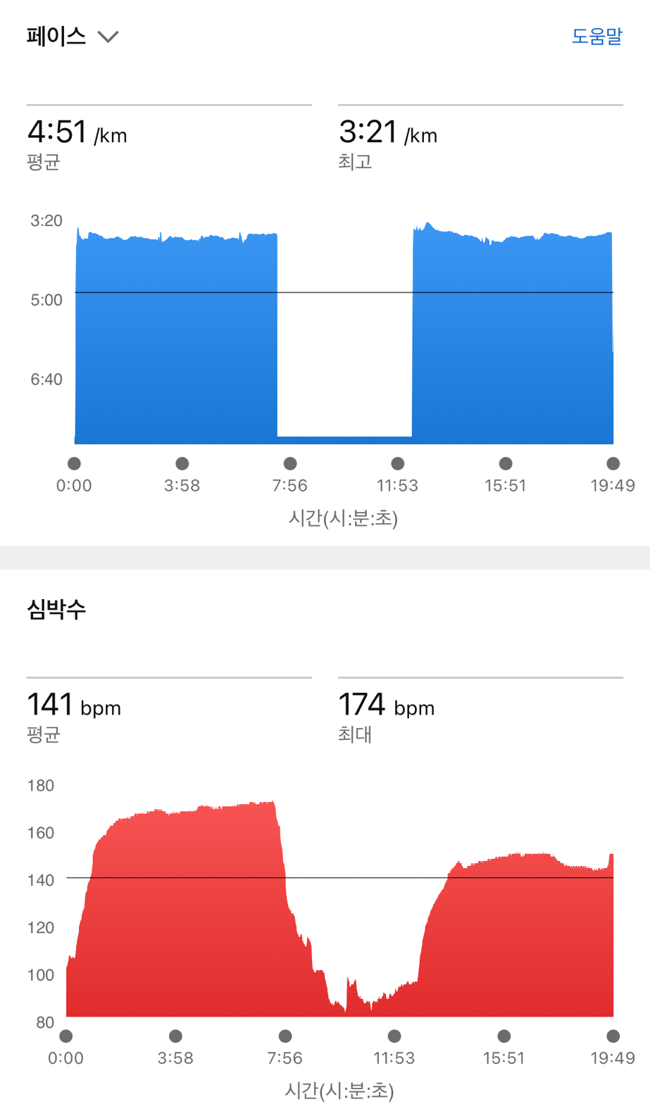 페이스가 좋아진 것도 그렇지만. 페이스를 유지하면서 제 안에서 느껴지는 감각들의 변화도 있습니다. 페이스가 80초 초반대로 빨라지면 상체가 뒤로 넘어가는 느낌이 있었습니다. 이제 상체가 잘 고정되는 것을 확실히 느꼈던 훈련입니다. 또한 호흡 조절. 착지 등 제 생각대로 조절되는 느낌을 받습니다. 단순히 페이스만 좋아지는 것이 아니라 내적으로 느껴지는 감각들의 발전도 있는 것 같습니다.
