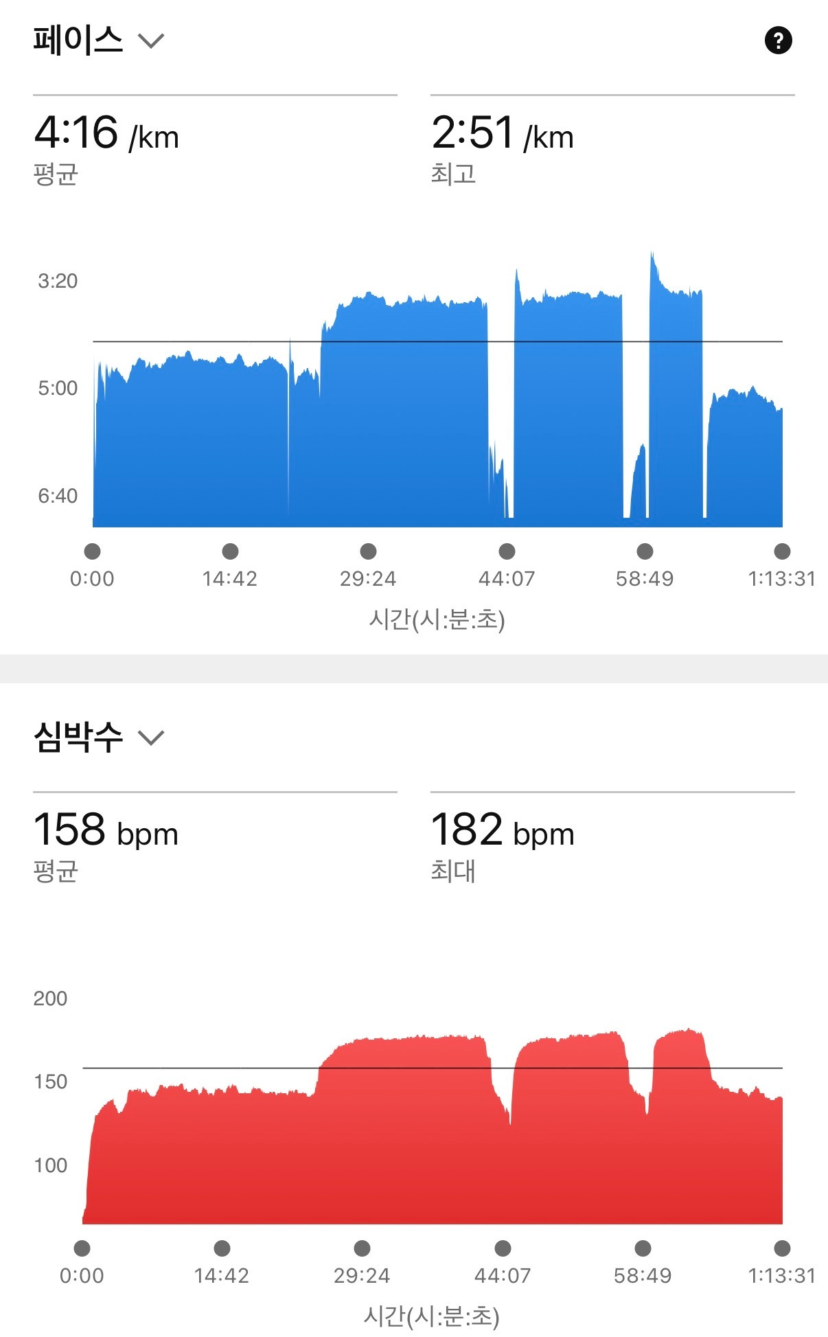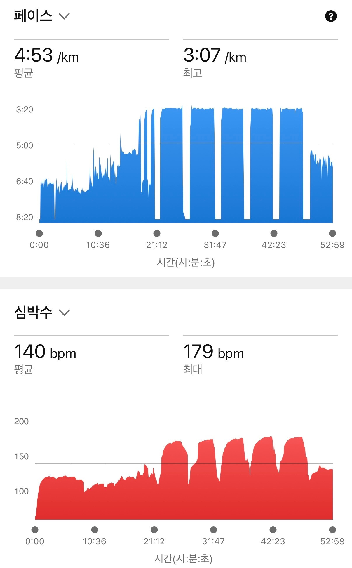 오후 ; 4분 30초 조깅 3km + 1000m(400m 85-86초) + 200m 휴식 80초 x 5세트