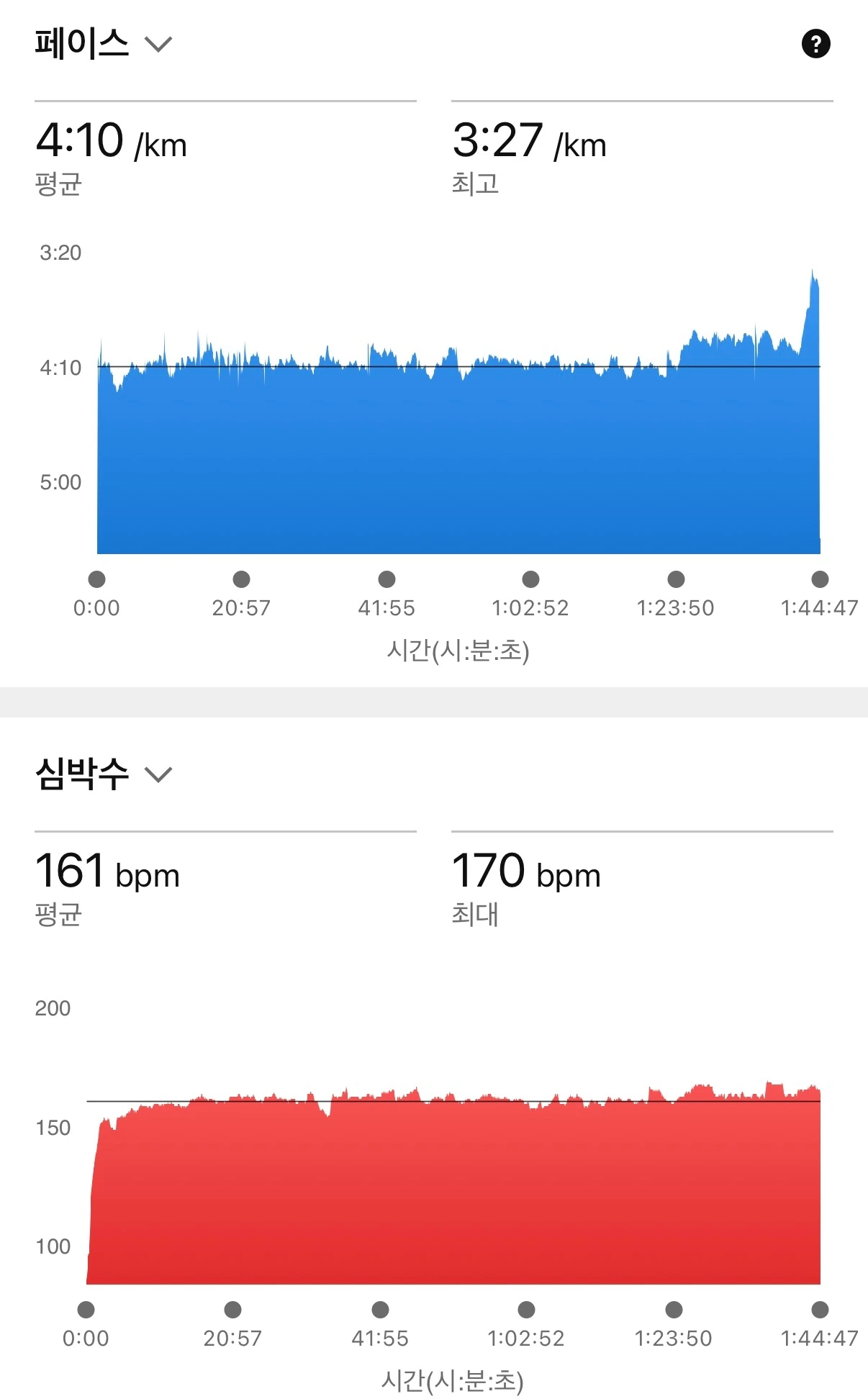 이렇게 빠른 훈련 페이스로 부담 없이 달리고 있는 내가 내 스스로도 놀랍다.