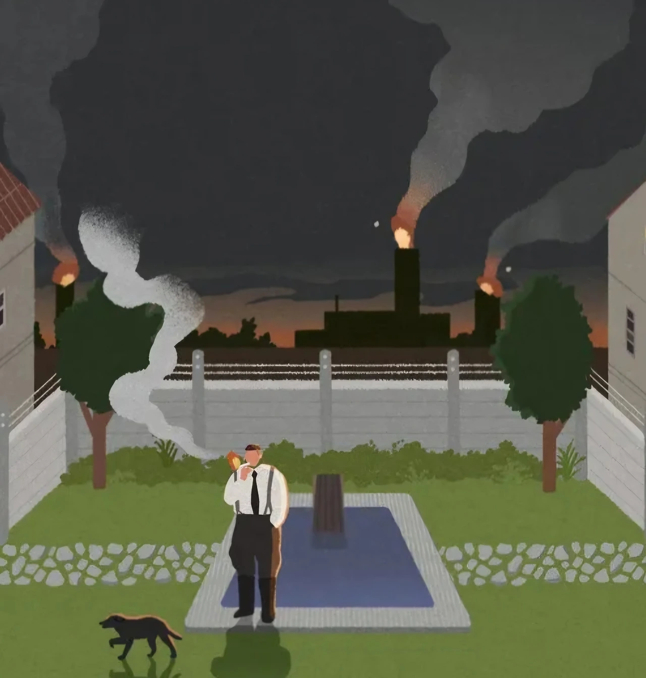 다시 아침. 평온해 보이는 한 가족. 평화롭게 아침식사를 마치고 아이들은 학교로, 아빠는 준비된 말을 타고 출근을 한다. 그가 출근하는 곳은 집 바로 옆 담장 뒤 아우슈비츠 수용소다.