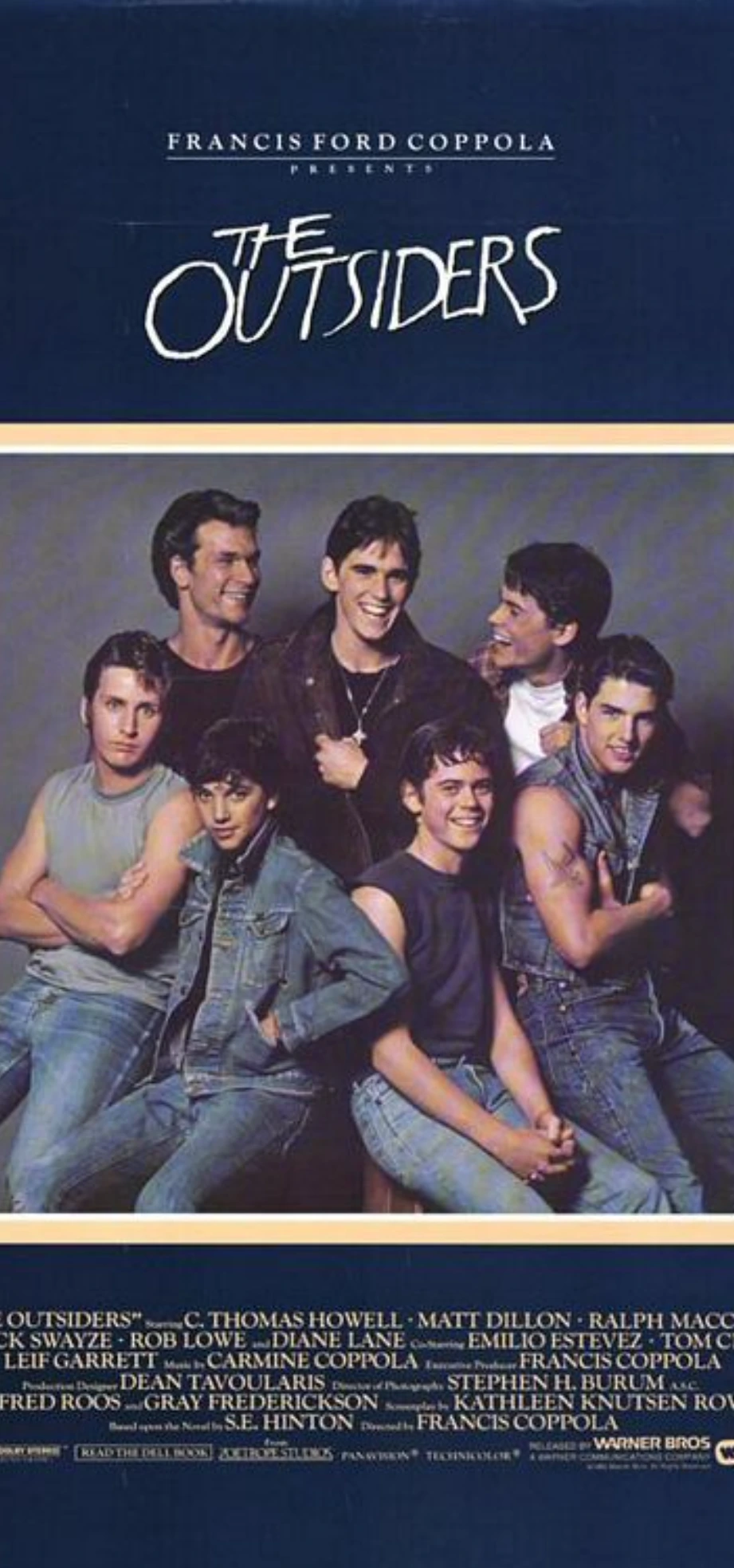 영화 '아웃 사이더'*프란시스 포드 코폴라 감독의 영화 '아웃 사이더'에는 무려 토마스 하웰, 맷 딜런, 랄프 마치오, 패트릭 스웨이지, 롭 로우, 에밀리오 에스테베즈, 탐 크루즈가 나온다. 게다가 다이안 레인과 레이프 가렛까지...