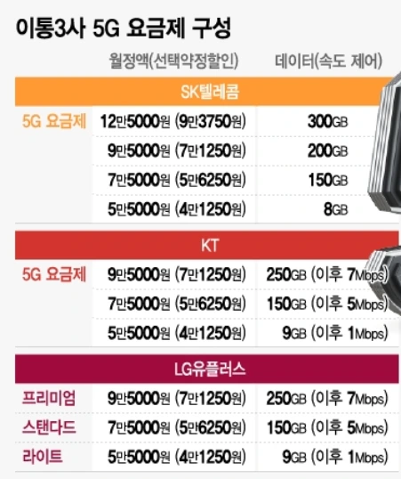 일단 현재는 심카드 교체만으로 LTE에서 5G로 넘어갈 수 없고 5G 전용 폰을 사야 하는데 가격이 150만 원 정도입니다. 뿐만 아니라 요금제도 제공 데이터나 통신사마다 책정 가격이 다르니 쉽게 비교할 순 없지만 더 비싸지는 것은 피할 수 없습니다. 마지막으로 서울과 광역시급에서만 서비스되며 5G가 높은 주파수 영역대를 사용하는 만큼 통신 사각지대도 아직은 많을 것으로 예상되기 때문에 생각보다 원활한 서비스를 제공받지 못할 수도 있습니다. 현재 LTE 사용이 특별히 불편함을 느끼지 못하신다면 5G 사용은 얼리어답터와 같이 체험에 더 큰 의미를 두셔야 할 것입니다.