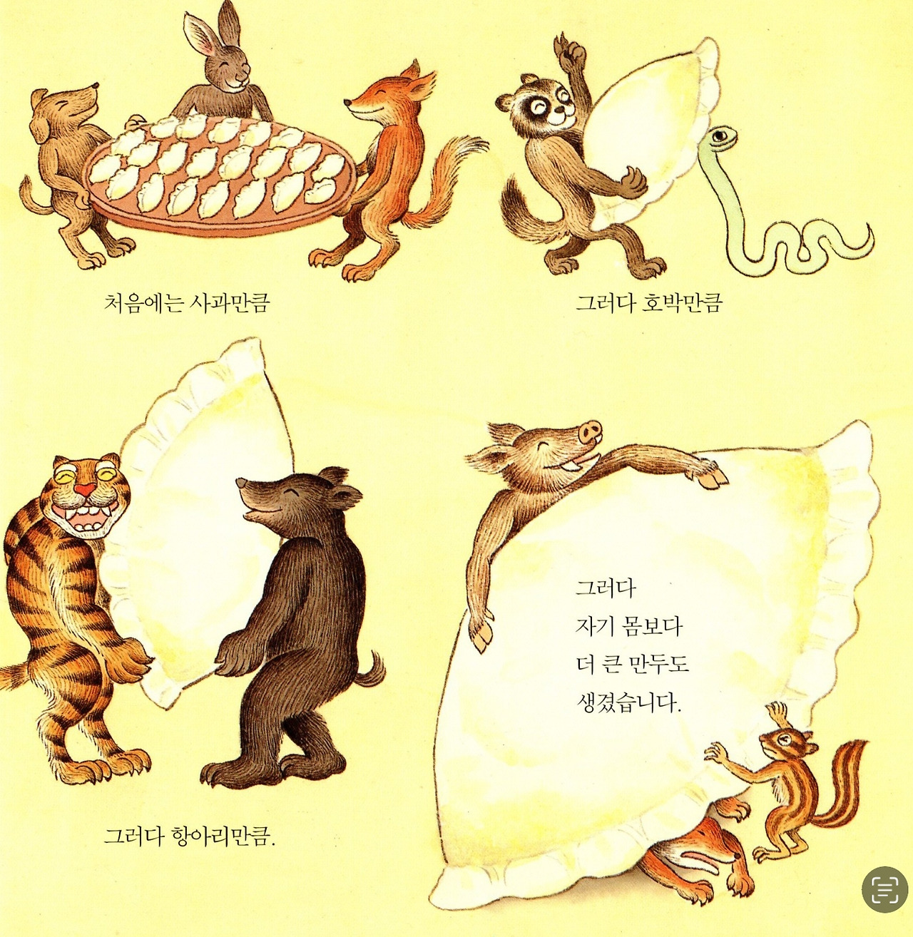 그림동화 <손 큰 할머니의 만두 만들기(글 채인선/그림 이억배)>를 읽으며 과연 딸이 손수 만두를 해먹을지 의구심이 생기긴 하지만 그래도 언젠가는 직접 만두를 만들어 먹을 날이 있지 않을까?라는 희망(? ㅎ)에 <만두 만들기> 레시피를 적어보고자 한다. 나 또한 내가 만두를 혼자서 빚을 거란 생각조차 해 보지 않았지만, 갑자기 만두를 빚고 있는 나를 보면서 딸도 어느 날, 갑자기 만두를 빚고 싶은 날이 있을지도 모른다는 생각이 들었다.
