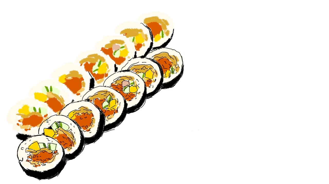 특별히 신경을 써서 하기보다는 집에 있는 재료들로 뚝딱 만들어내는 반찬 김밥(반찬에 따라 김밥의 이름이 달라진다는 점), 두부와 쪽파가 송송 들어간 심심한 된장국이면 끝이다. 여유롭게 5줄 정도 말면 더 먹을 사람은(대부분 남편이지만 ㅋ) 더 먹고 한다. 그것도 한자리에 앉아 먹는 것이 아니라, 각자 먹을 만큼 썰어서 각 접시에 된장국과 함께 배급(?)을 주면 일하다가 각자가 알아서 먹는다. 그리고 나도 혼자 행복하게(?) 먹는다. 각자가 먹은 그릇은 알아서 싱크대로 가져오거나, 아니면 일 끝날 때까지 서로 신경을 안 쓴다.