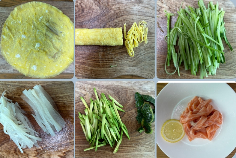 * 가장 중요한 점 : 재료들 모두 곱게 채 치듯이 썰어야 연어의 맛을 최대한 살릴 수 있다.