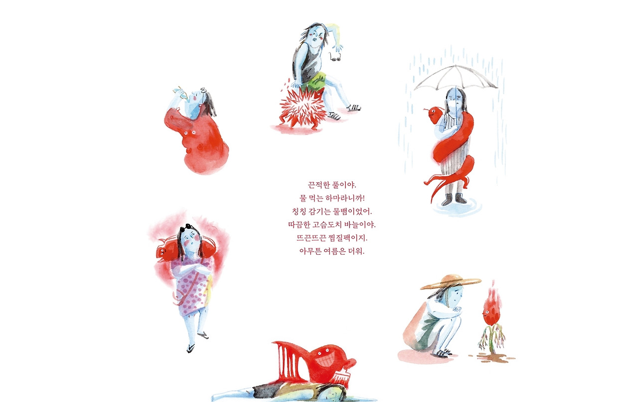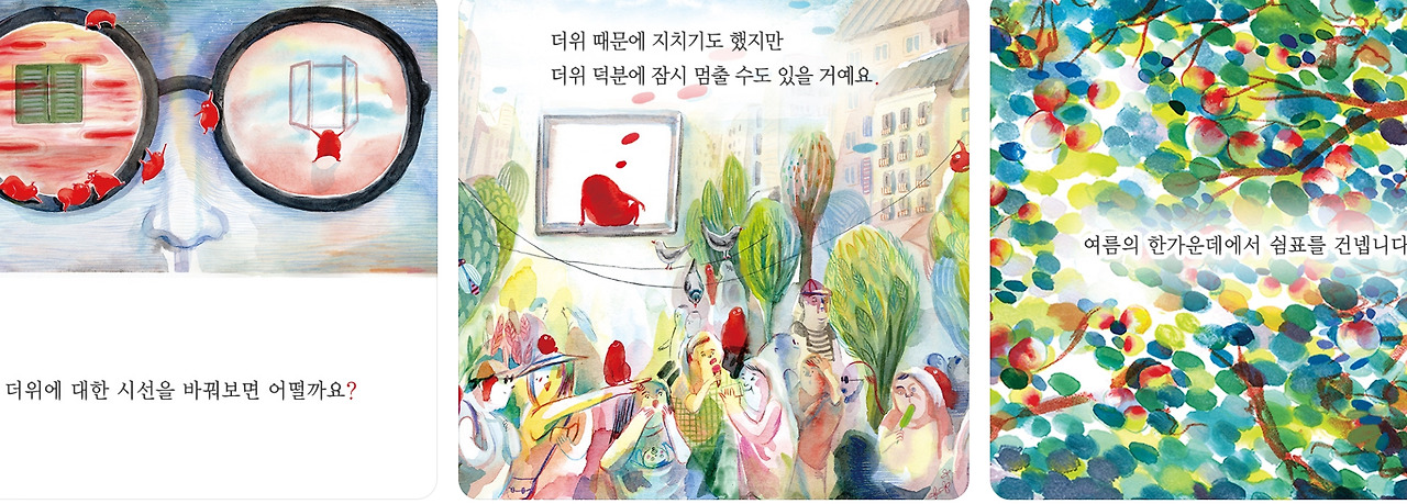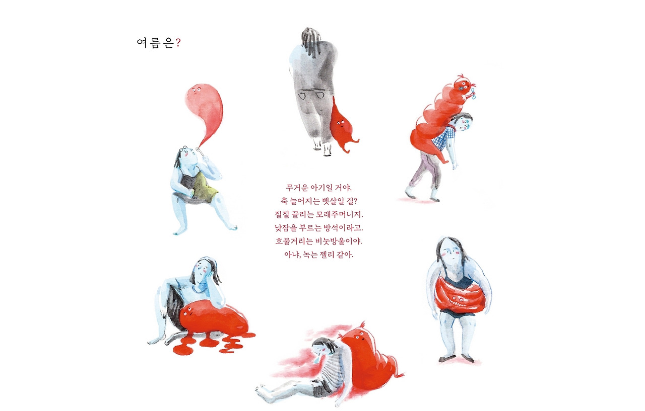 그러나 그대로 무더운 여름에 질질 끌려 다닐 순 없었는지, 이소영 작가는 더운 ‘여름’에 대한 시선을 휘리릭! 바꾸네요.