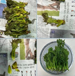 그리고 일사천리로 두릅을 데쳐냈다.
