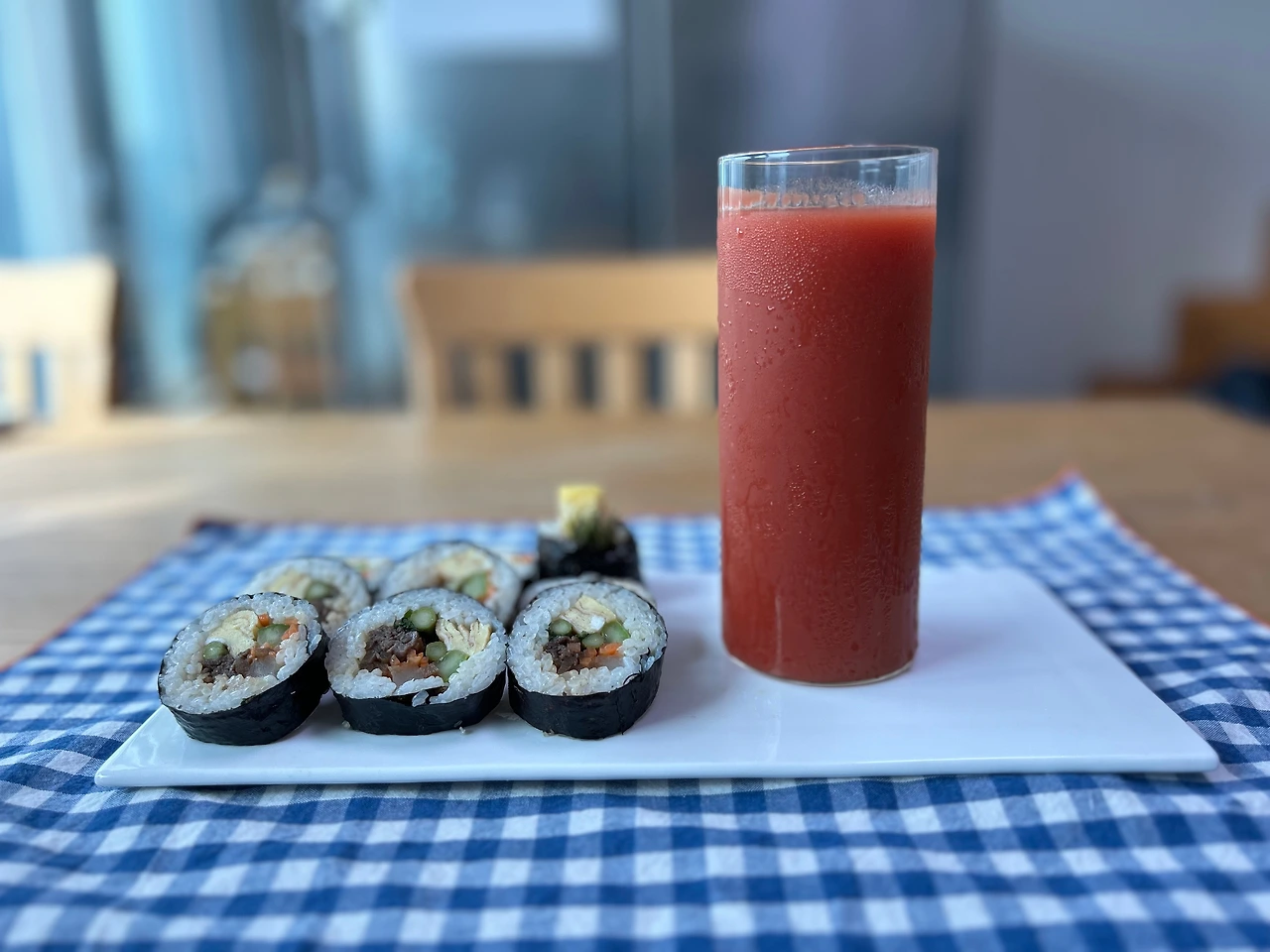 평소 고기를 좋아하는 딸이라 어제 만들어 논 '두릅 소고기말이'를 넣고 김밥을 싸기로 했다.